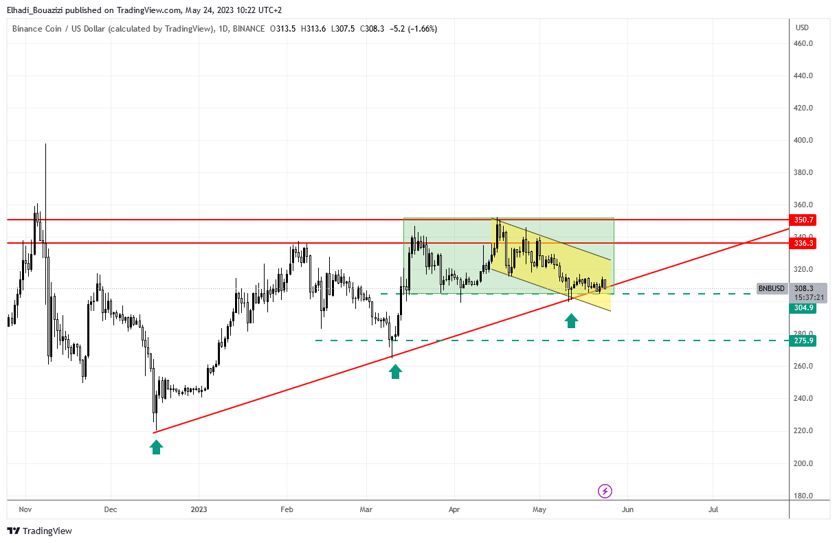 يُتداول سعر عملة بينانس BNB في قناة سعرية هابطة منذ عدة أسابيع و لكنه الآن يختبر مستوى دعم قوي، فهل هي فرصة مناسبة للشراء؟.