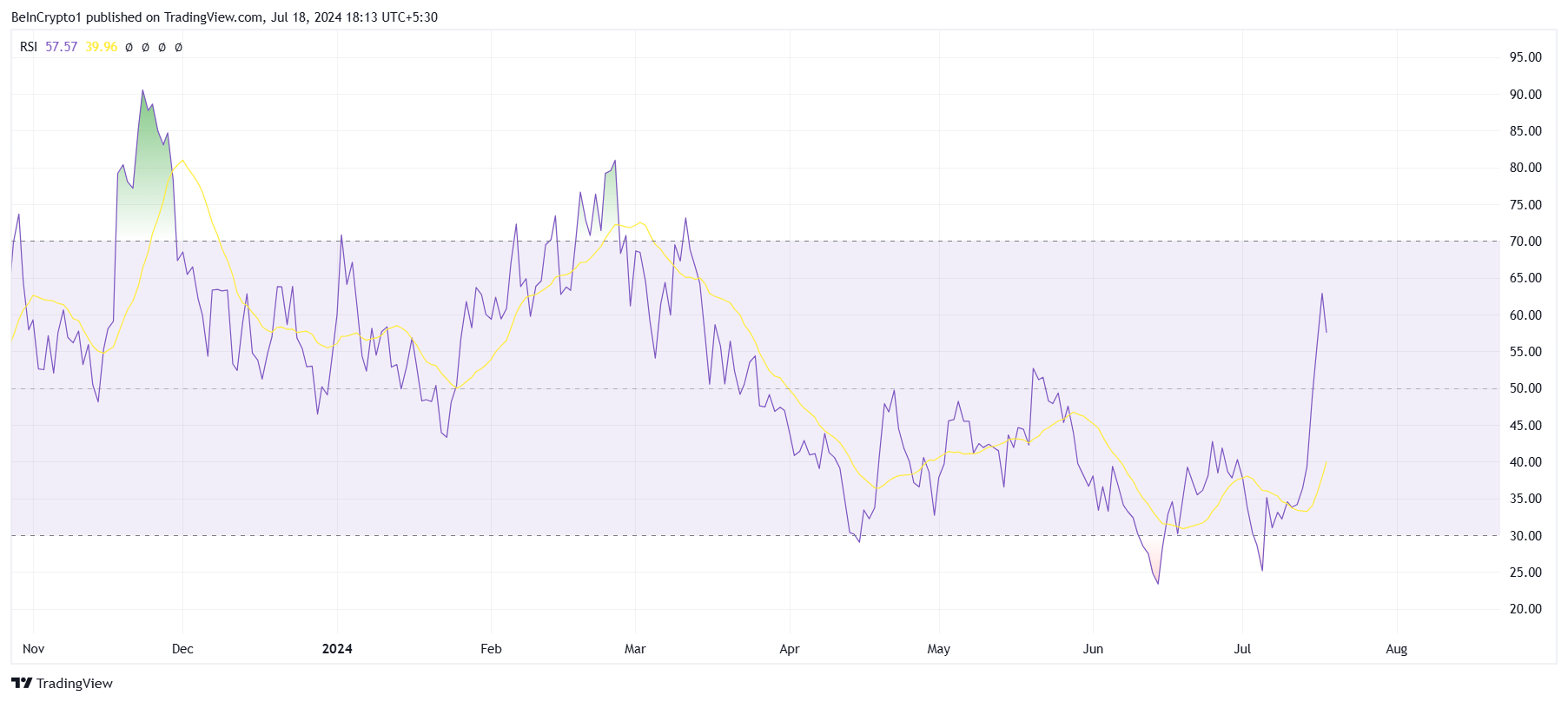 كون مؤشر RSI فوق الخط المحايد يشير إلى زيادة الاهتمام بالشراء. هذا يوحي بأن المستثمرين متفائلون بشأن إمكانيات عملة تيليجرام لمزيد من المكاسب، مما يساهم في الشعور الصعودي الحالي.