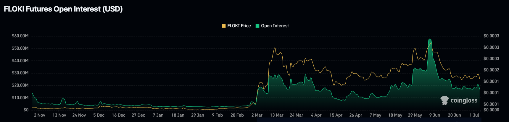 سعر فلوكي FLOKI ينخفض بنسبة 21% في يوم واحد.. والفائدة المفتوحة تنخفض بخُمس
