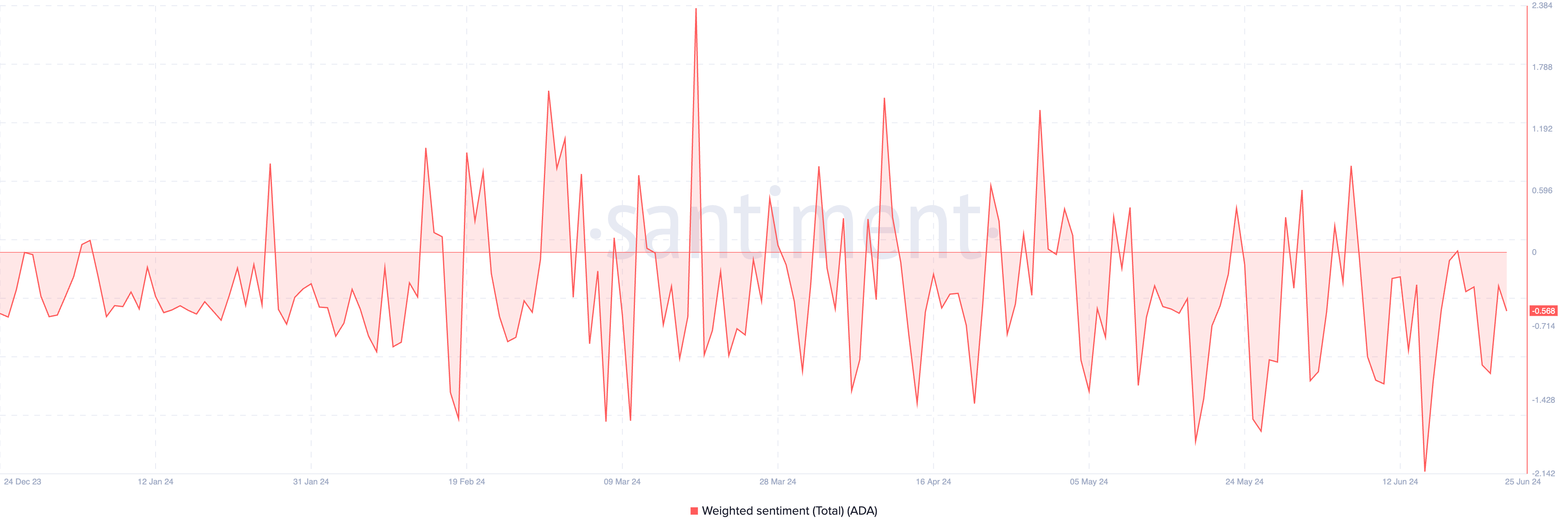 تأكيدًا لذلك، يشير تقييم الشعور المرجح لـ ADA إلى هذا. في وقت النشر، قيمة المقياس هي -0,58.