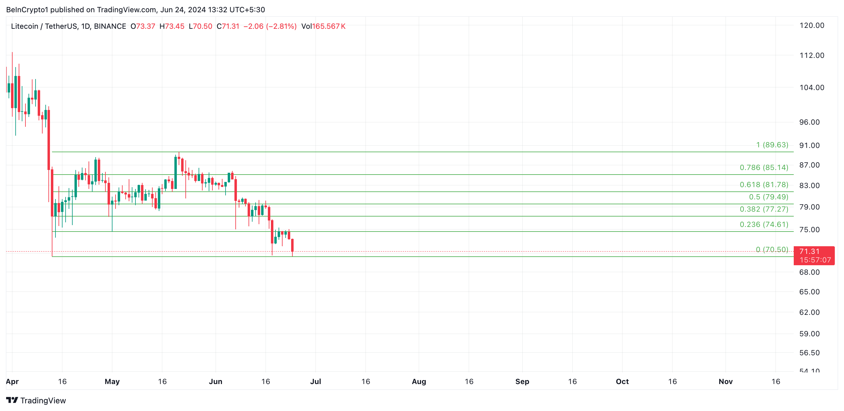 إذا ازدادت ضغوط البيع، قد ينخفض سعر LTC إلى 70,50 دولار.