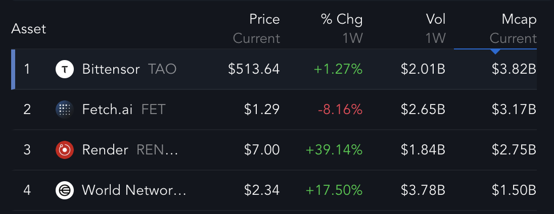 أكبر 4 عملات للذكاء الاصطناعي. المصدر: Messari