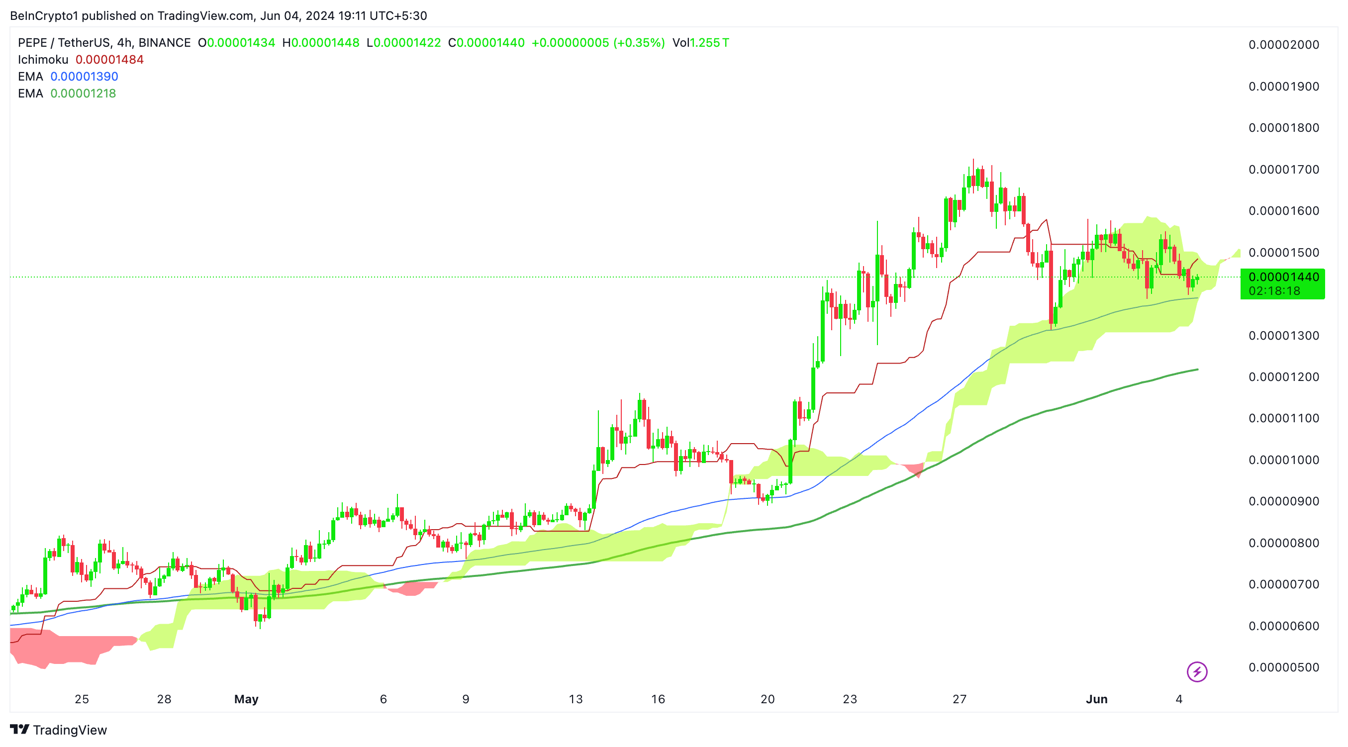 • اكتشف إشارات السوق الرئيسية: تعرف على كيفية تشكيل سحابة إيشيموكو والمتوسطات المتحركة الأسية لتحركات أسعار PEPE.