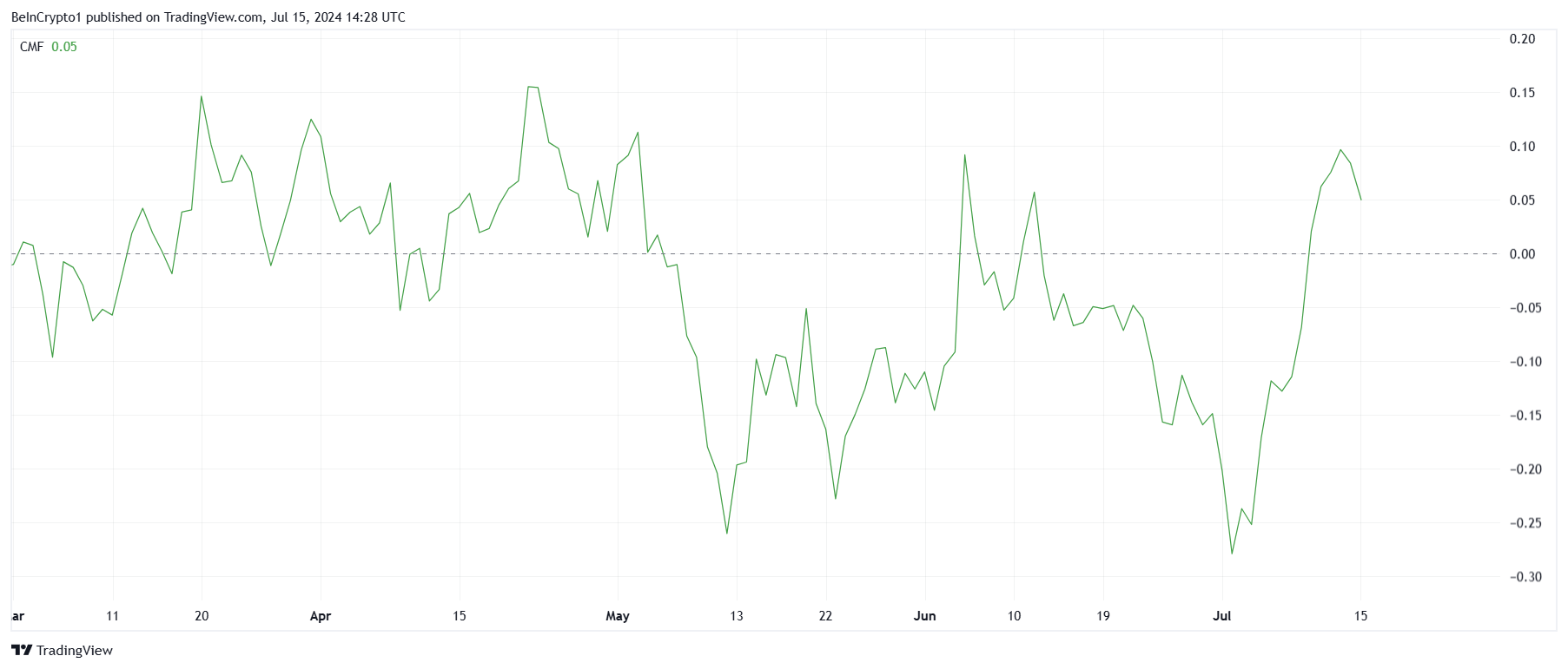 كما يسلط تدفق الأموال Chaikin (CMF) لـ STX الضوء على التدفقات المتزايدة الداخلة. يشير هذا الاتجاه إلى أن المزيد من رأس المال يدخل السوق، مما يدعم فكرة أن المستثمرين أصبحوا أكثر ثقة.