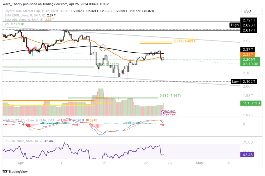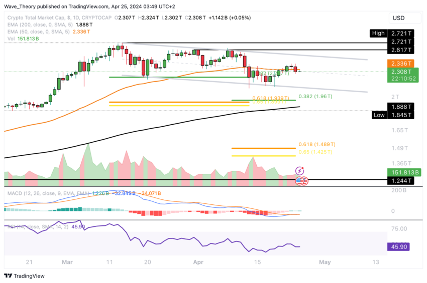 في الآونة الأخيرة، أظهر السوق انتعاشا جزئيا، مخترقا مقاومة EMA لمدة 50 يوما عند حوالي 2.336 تريليون دولار. ومع ذلك، كان هذا الانتعاش قصير الأجل. حيث استأنف السوق اتجاهه التصحيحي منذ أول من أمس.