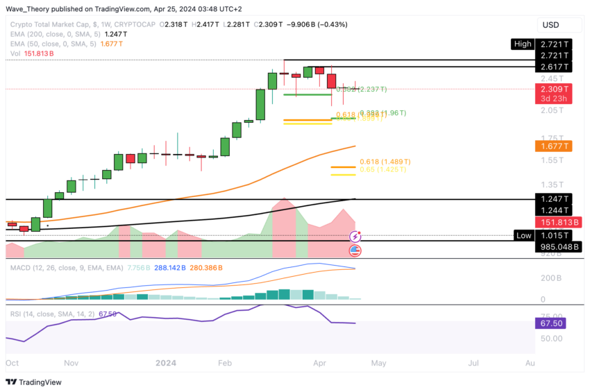 ومع ذلك، إذا فشل السوق في الحفاظ على مستوى الدعم هذا، يصبح من الممكن تصحيح النسبة الذهبية لدعم حوالي 1.9 تريليون دولار.