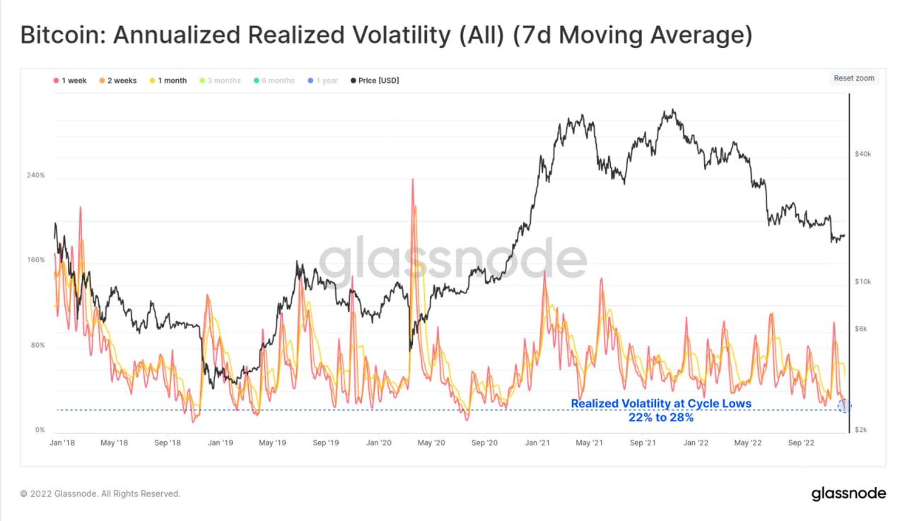 ولا تأتي هذه الأرقام على النحو المرجو، ولكن استمرار التقلب المنخفض في عملة بيتكوين BTC قد يوفر للمستثمرين فرصة للحصول على متوسط التكلفة بالدولار، وانتظار الانعكاس، وقد وصلت التقلبات الحالية عند أدنى مستوياتها لعملة بيتكوين BTC، بحسب مقارنتها بالأرقام التي وصلت إليها في أكتوبر 2020.