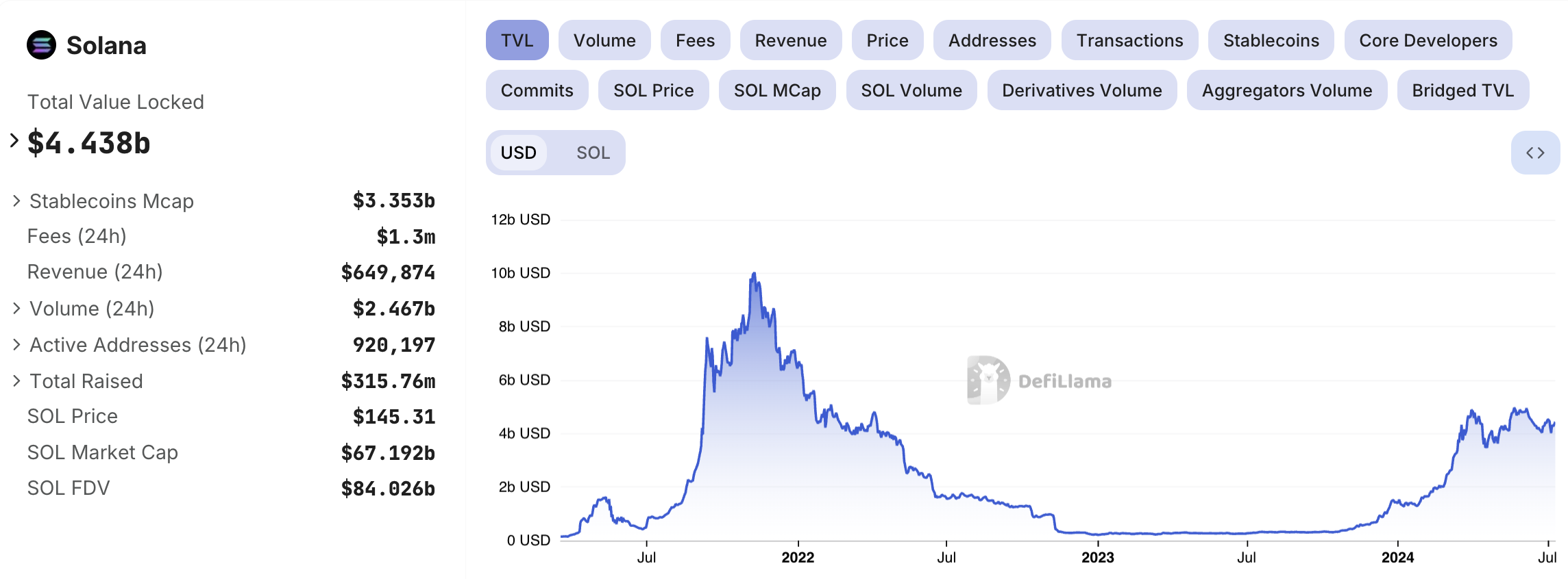 القيمة الإجمالية المقفلة SOL. المصدر: DefiLlama