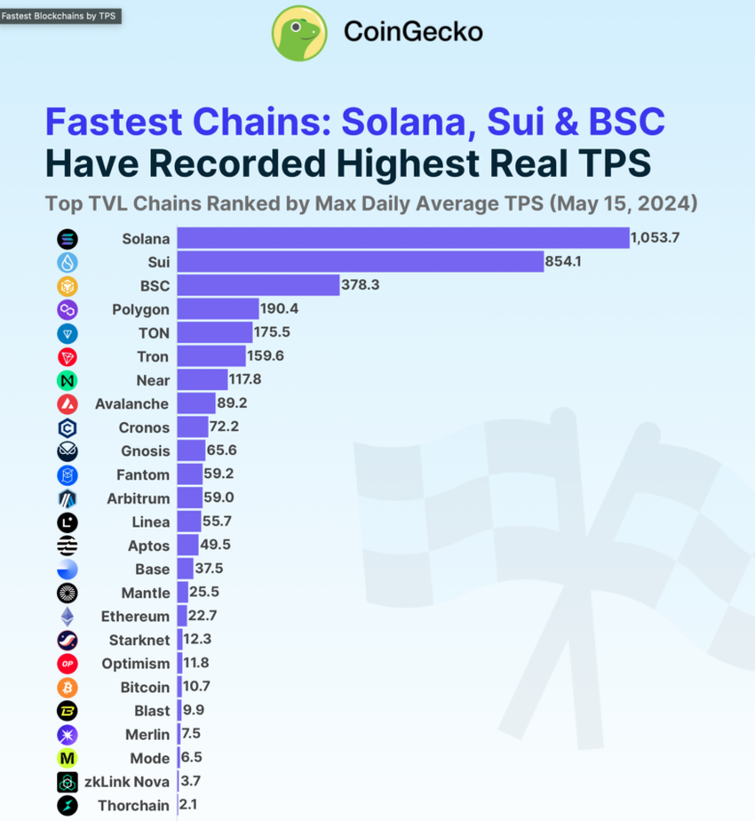 • تكشف دراسة CoinGecko أن Solana هو أسرع blockchain مع 1,504 TPS ، أسرع 46 مرة من Ethereum.