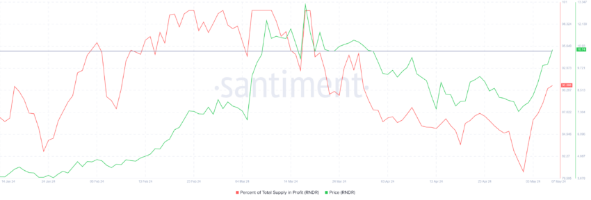 في الوقت الحالي، يتمتع سعر Render بمجال للنمو على الرغم من حقيقة أن ما يقرب من 90٪ من العرض يحقق أرباحا. بشكل عام ، يتم تشكيل قمة السوق عندما يصبح حوالي 95٪ من المعروض من الأصل مربحا. يتبع قمة السوق هذه تصحيحات ، مما يؤدي إلى تهدئة السوق.