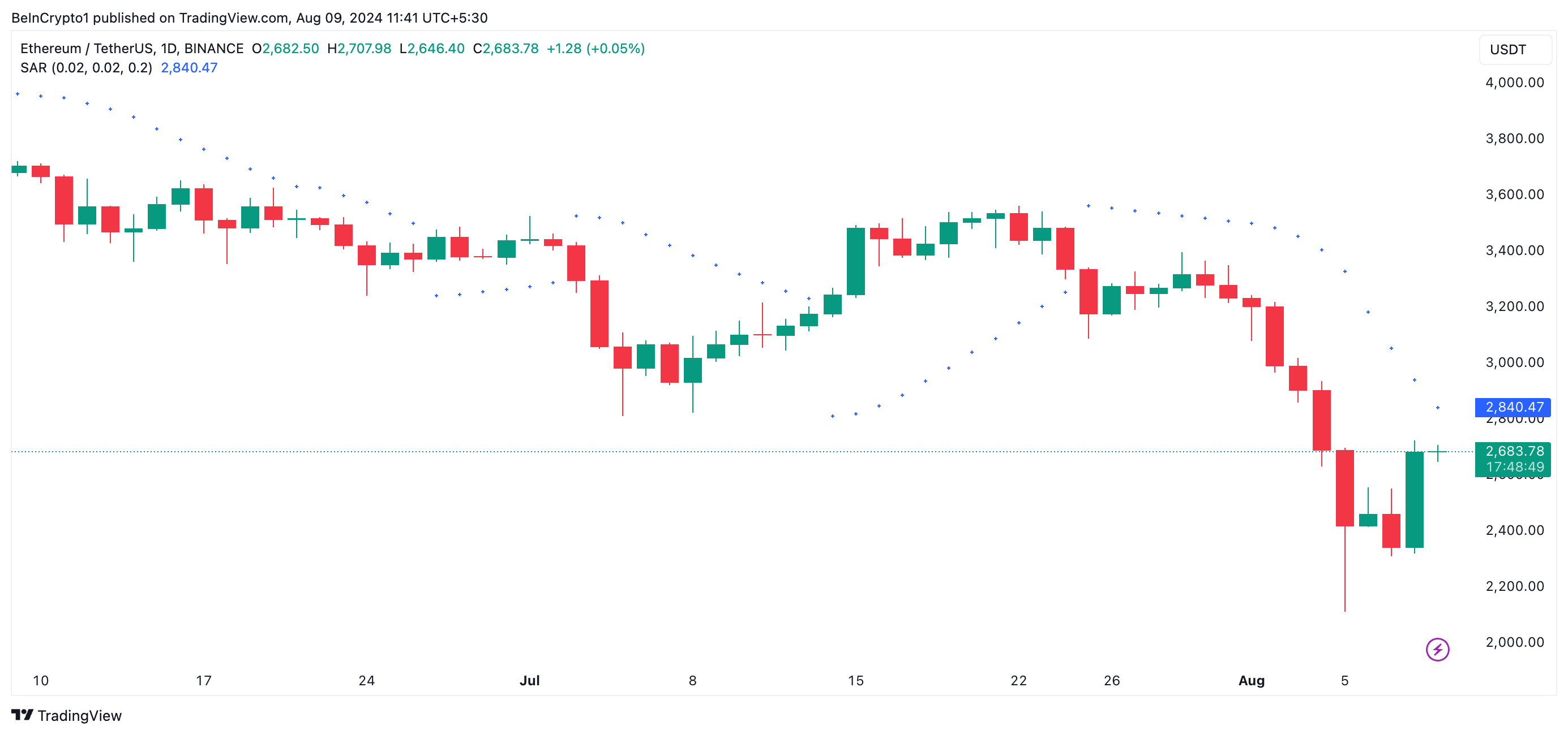 ومع ذلك، إذا استمر الطلب على العملة البديلة الرائدة في الارتفاع، فقد يرتفع قيمتها نحو 2 868,69 دولار.