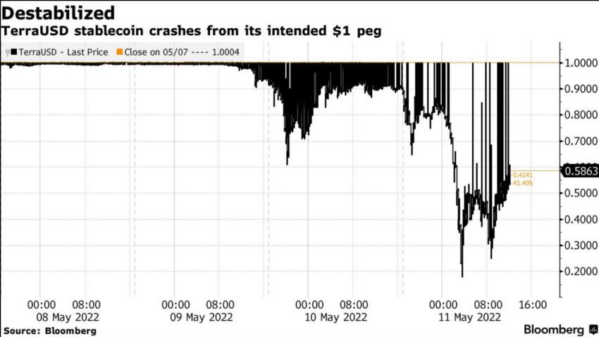 وفشلت جميع الآليات التي تهدف إلى مساعدة العملة المستقرة للبقاء عند دولار، بما تسبب في انخفاض التيرا إلى 60 سنت.