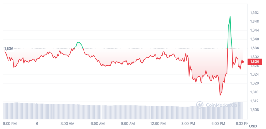 وتأثراً بالأخبار، شهد سعر الإيثر قفزة كبيرة قبل أن ينخفض إلى ما يقرب من 1630 دولار. حيث تم تداوله خلال اليوم.