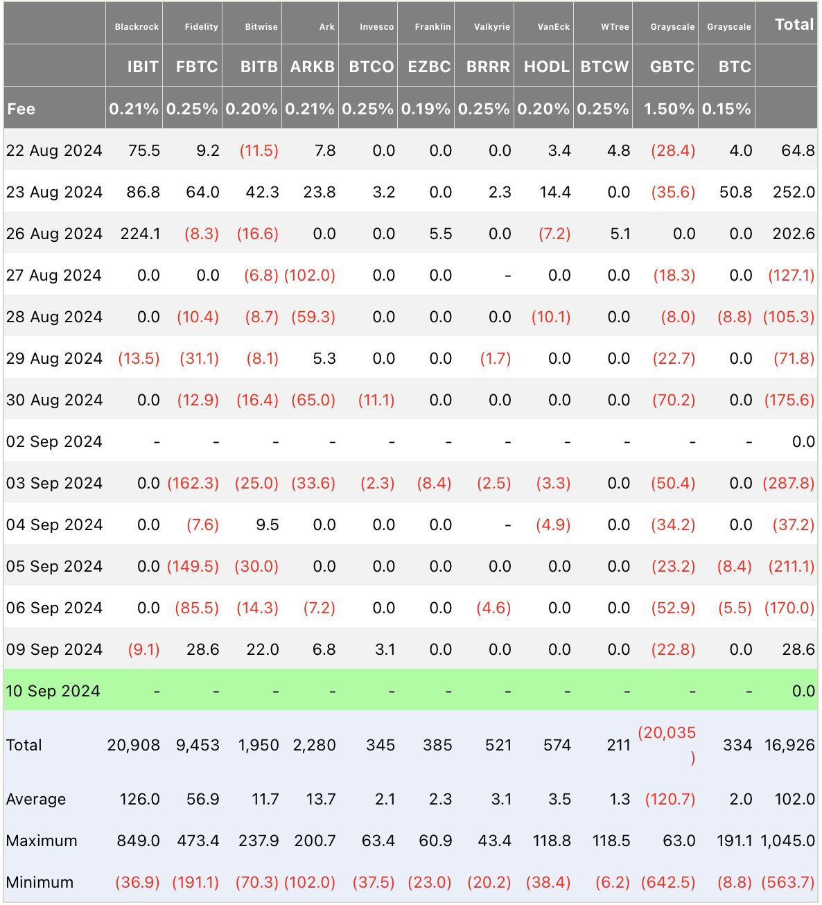 “كان هذا الشعور السلبي مدفوعًا بالبيانات الاقتصادية الكلية من الأسبوع السابق، والتي زادت من احتمالية خفض معدل الفائدة بمقدار 25 نقطة أساس من قبل الاحتياطي الفيدرالي الأمريكي. ومع ذلك، تباطأت التدفقات اليومية في وقت لاحق من الأسبوع بعد أن جاءت بيانات التوظيف دون التوقعات. الأسواق الآن في انتظار تقرير التضخم CP| يوم الثلاثاء، مع احتمالية أكبر لخفض بمقدار 50 نقطة أساس إذا جاء التضخم دون التوقعات،” جاء في التقرير.