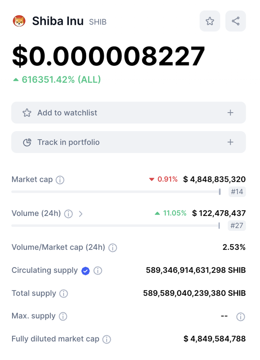 لا تحتاج شيبا إينو إلى مقدمة لأنها لا تزال ثاني أكبر عملة meme في العالم. حيث تشير بيانات من CoinMarketCap إلى أنه تم تداول أكثر من 121 مليون دولار من SHIB خلال الـ 24 ساعة الماضية وحدها.