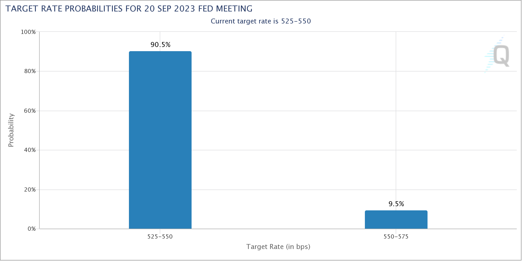 وحسب أداة مراقبة الفيدرالي FedWatch Tool يتوقع أغلب المستثمرين الكبار في سوق العقود المستقبلية في بورصة شيكاغو ألا يحدث أي تغيير من قِبل الاحتياطي الفيدرالي في اجتماعه المقرر في سبتمبر المقبل. حيث ارتفعت هذه النسبة إلى 90.5% من 86.5% التي أشرنا إليها في تقرير أمس الأربعاء.