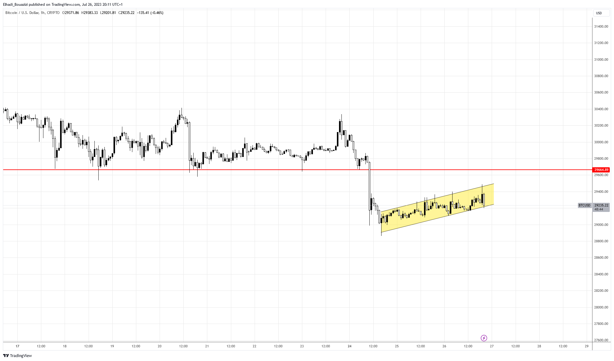 أسواق العملات الرقمية لم تتأثر بالقرار الذي كان متوقع على نطاق واسع حيث ظل سعر البيتكوين BTC تتداول في نطاق ضيق محصورة في قناة سعرية مائلة إلى الصعود. والسعر الآن مرتفع بنسبة 0.35% عند مستوى 29365 دولار.