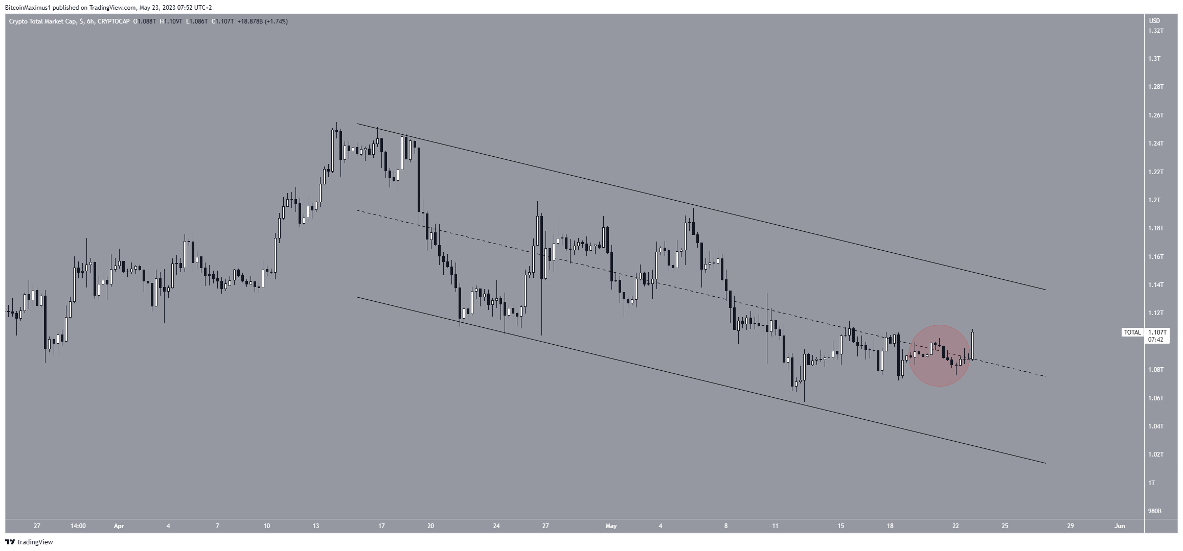 وانخفضت القيمة السوقية للعملات المشفرة داخل قناة موازية هابطة منذ السابع عشر من إبريل. وتعبر هذه القناة عن نموذج هبوطي، لذا يكون الخروج من تلك القناة هو التوقع الأكثر احتمالية.