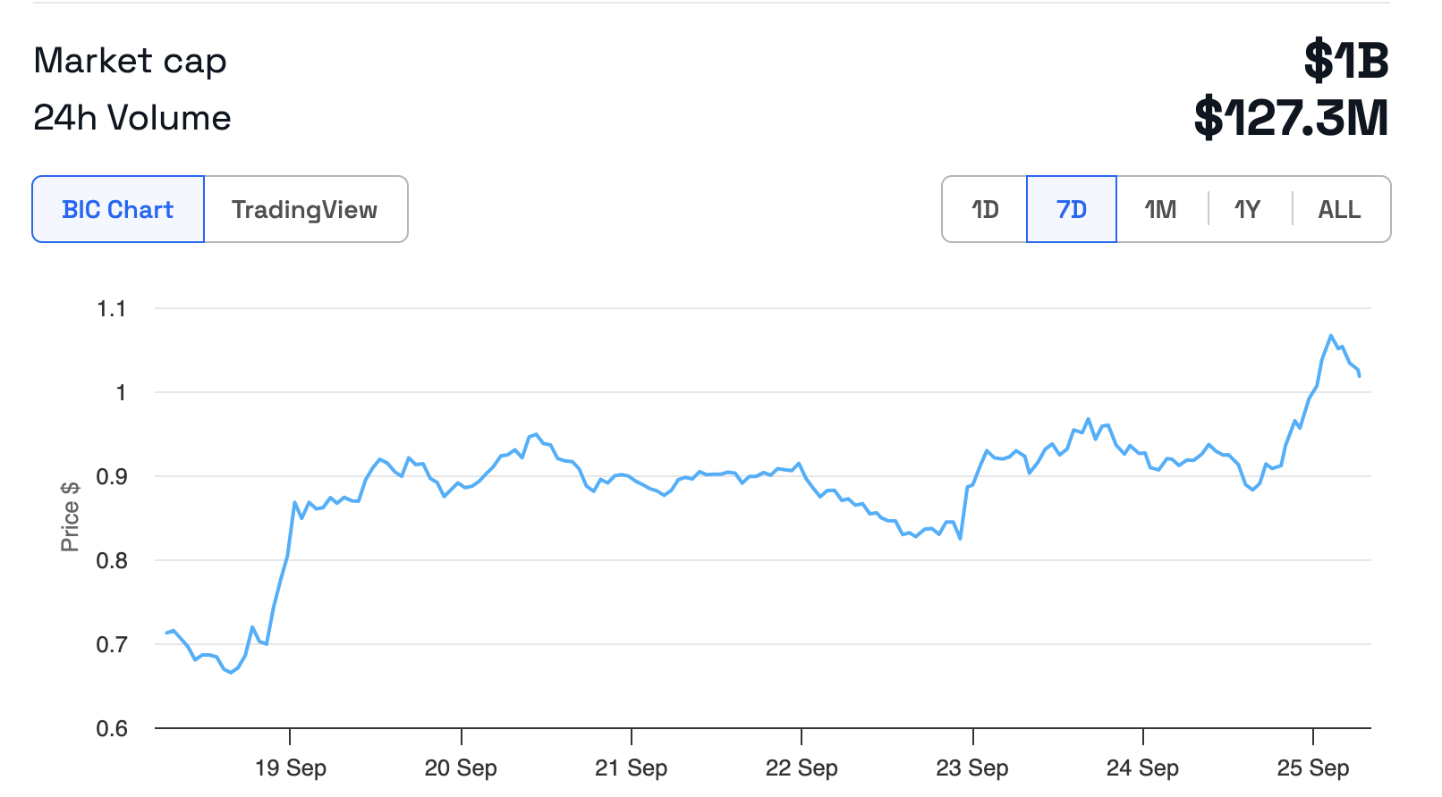 على مدى عدة أشهر، فشل سعر عملة "POPCAT" في كسر حاجز 1 دولار رغم المحاولات المتكررة. لكن اليوم، في 25 سبتمبر، ارتفعت عملة الميم على شبكة سولانا لتتجاوز حاجز 1.08 دولار، مسجلةً بذلك أعلى مستوى جديد على الإطلاق.