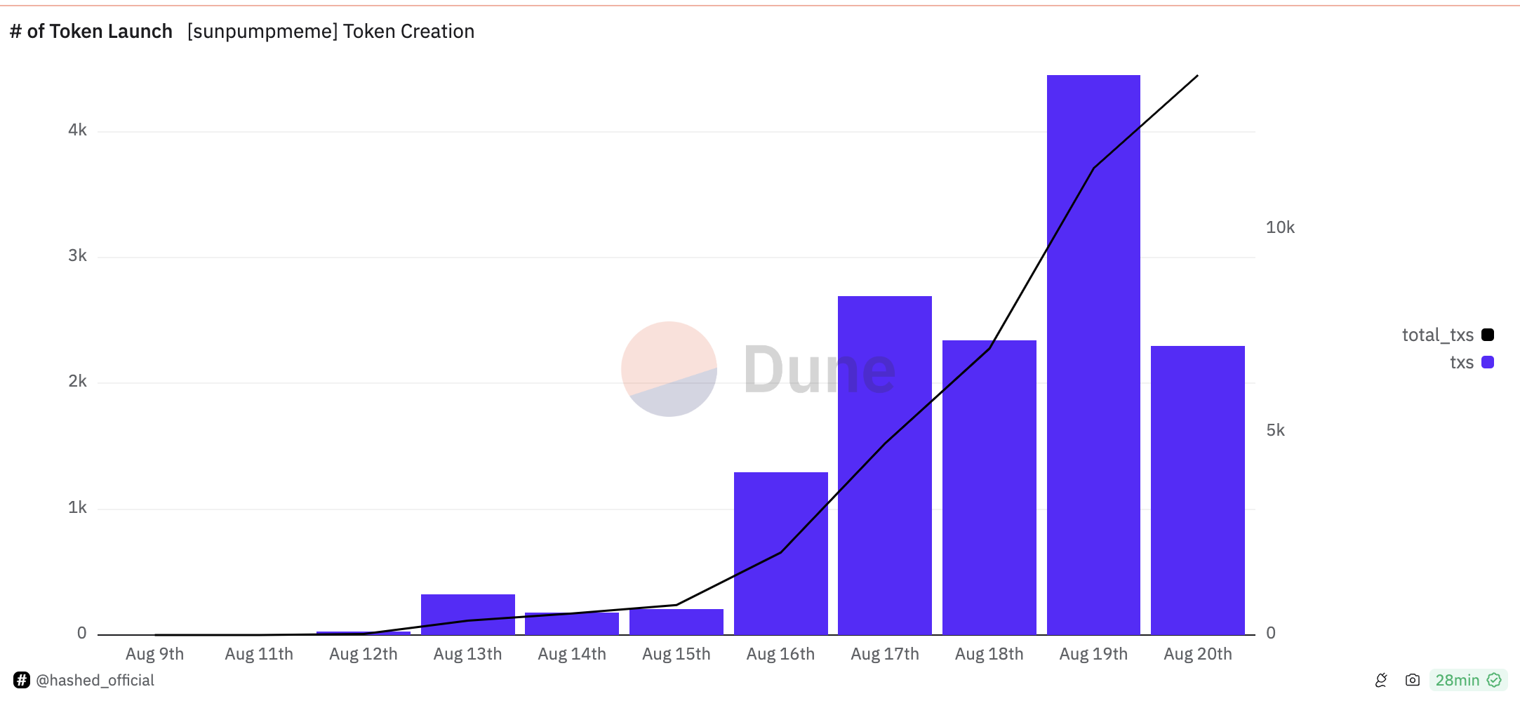 في الوقت نفسه، أدى الأداء المثير للإعجاب لساندوج إلى زيادة في عدد الرموز المطروحة على سانبامب. في 18 أغسطس، كان هناك أقل من 6,000 عملة ميم على ترون. وفقًا لتحليلات دون، قفز هذا العدد منذ ذلك الحين إلى 13,815.