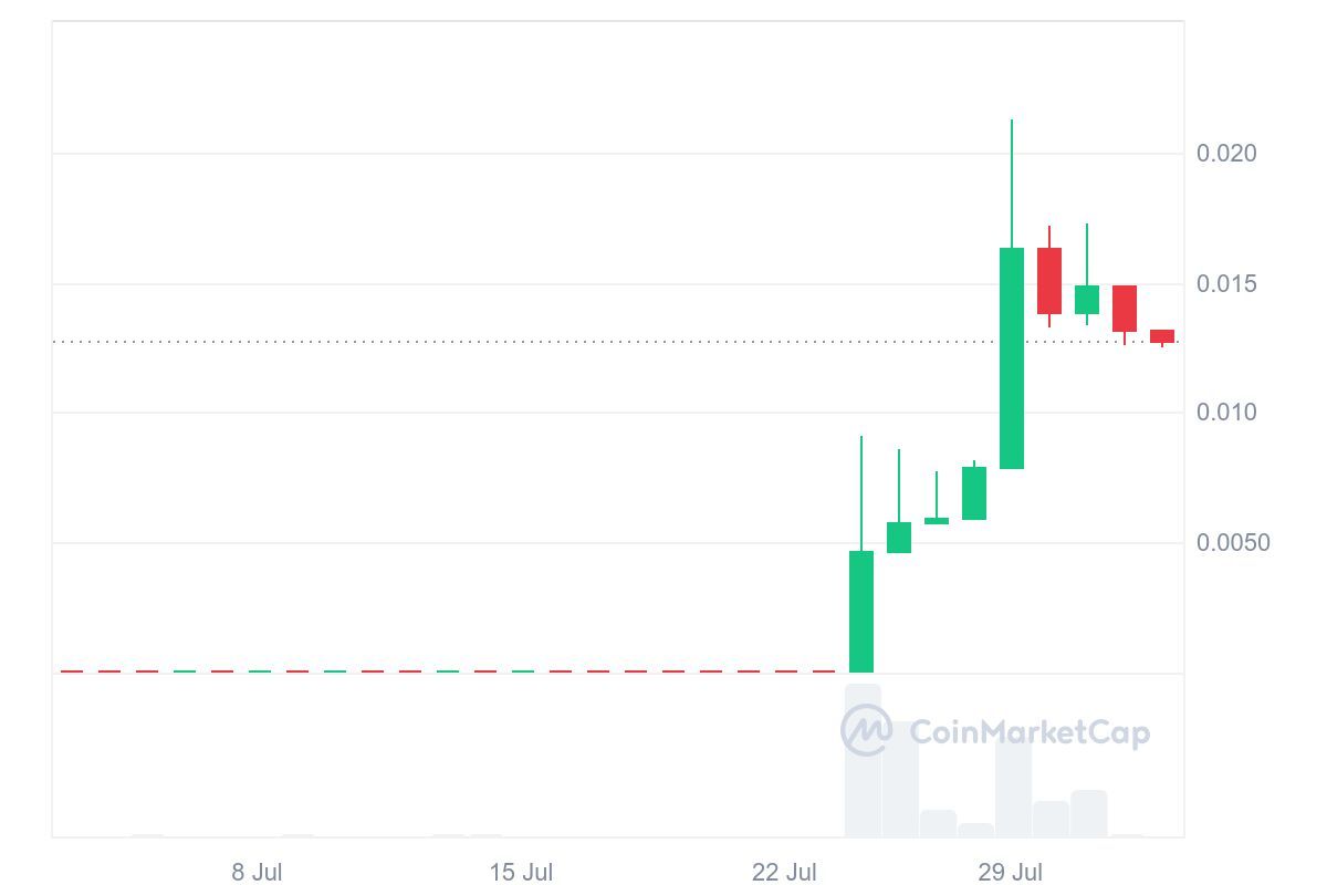 فاجأت عملة الميم Crypto-AI-Robo.com (CAIR) السوق بارتفاع بنسبة 11,712% في أسبوع واحد فقط في يوليو. دفع هذا الارتفاع بسعر العملة البديلة من 0.0001076 دولار إلى 0.01271 دولار.