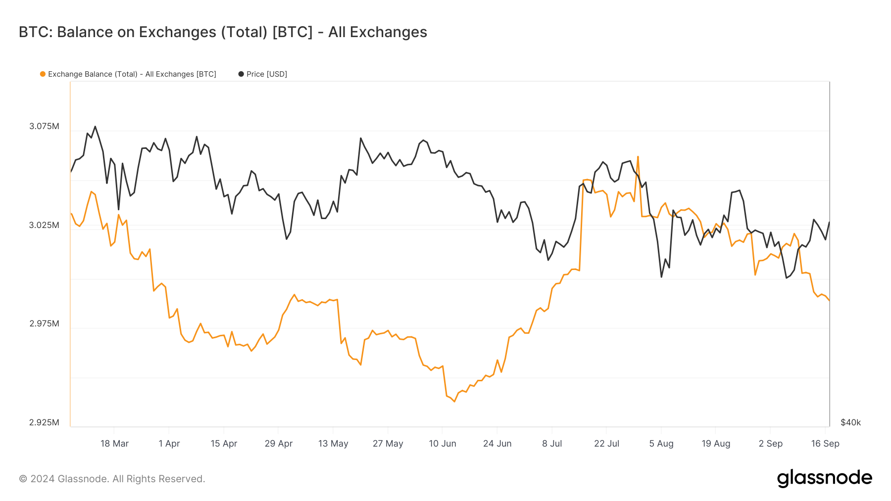 أظهر المستثمرون تفاؤلًا قويًا في إمكانية تعافي بيتكوين، وهو ما يتضح في تجميعهم لـ 33,950 BTC خلال العشرة أيام الماضية. انخفاض رصيد البورصات من 3,022 مليون BTC إلى 2,988 مليون BTC يدل على أن المستثمرين يسحبون عملاتهم المشفرة إلى الحفظ الذاتي. هذا التجميع لـعملة BTC، بقيمة تزيد عن 2 مليار دولار، يبرز الثقة المتزايدة في السوق.
