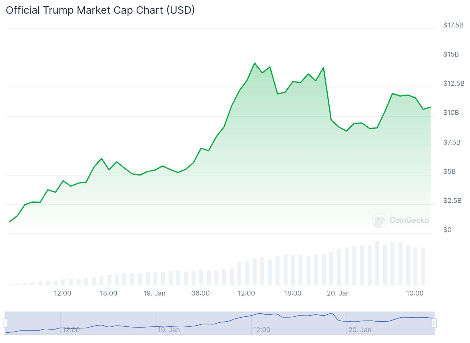 شهدت عملة ترامب TRUMP الرقمية، الصادرة عن الرئيس الأمريكي المنتخب دونالد ترامب، انطلاقة مدوية في سوق العملات الرقمية حيث بلغت قيمتها السوقية في ذروة الارتفاع 14 مليار دولار خلال يومين فقط، مما جعلها في المرتبة الحادية والعشرين عالميًا.