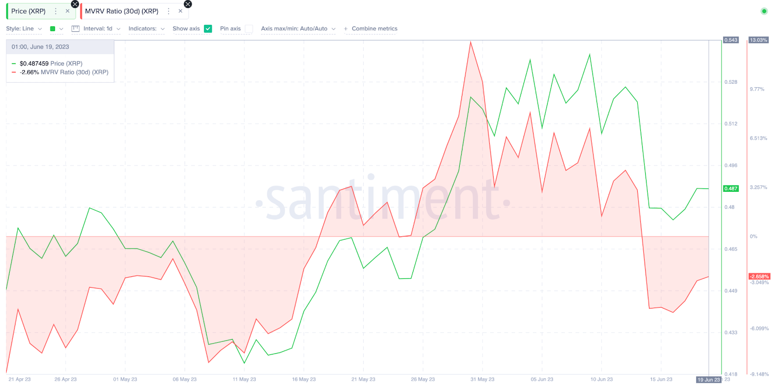 وفي يوم الثلاثاء 13 يونيو، وصل سعر عملة XRP إلى أقصى ارتفاع وصل له خلال عام 2023 عند 0.56 دولار. حيث أظهرت البيانات عبر السلسلة أن الارتفاع كان مدفوعًا إلى بقضايا الشركة مع لجنة الأوراق المالية والبورصات التي استهدفت البورصات الرئيسية والعملات البديلة.