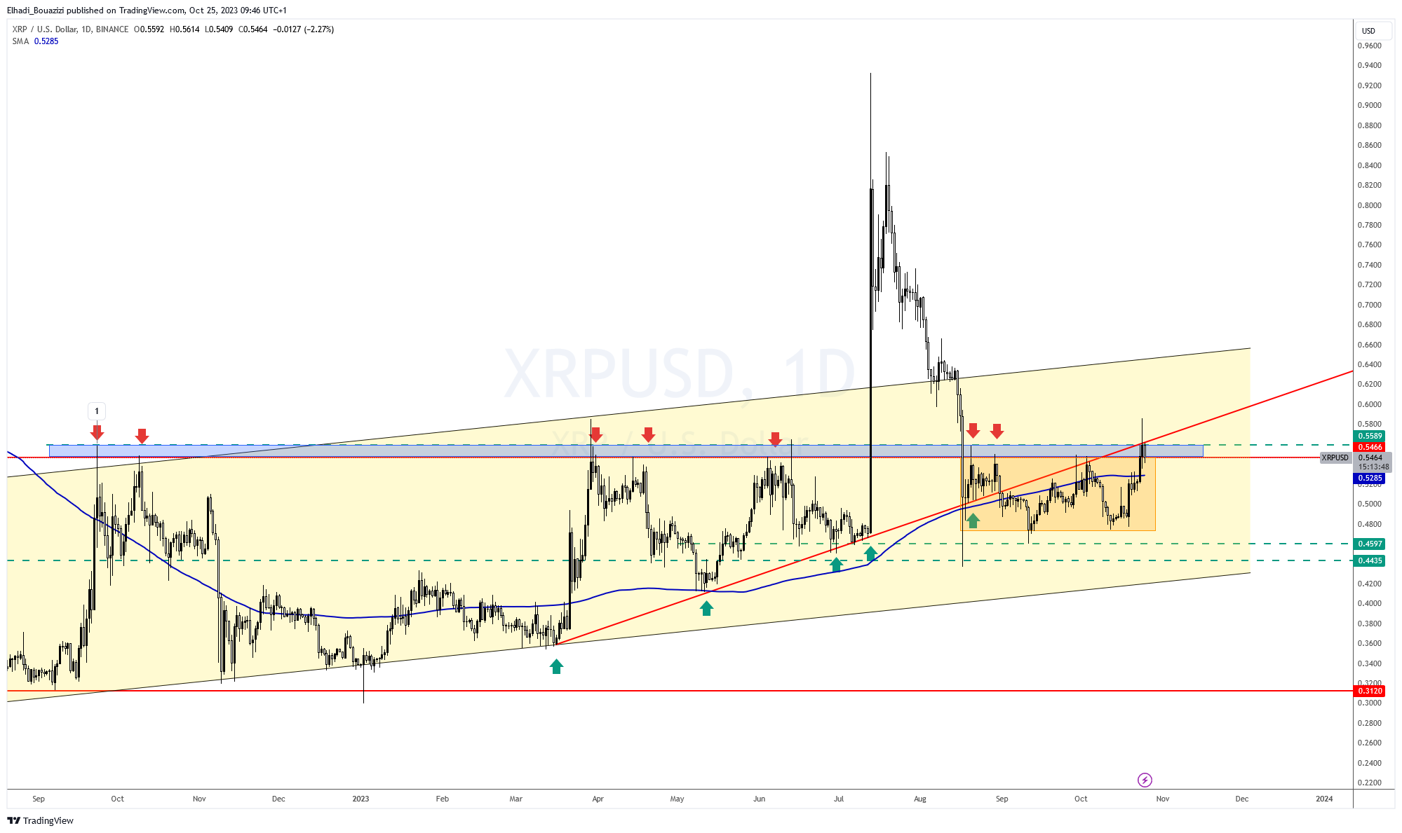 و إلا فإنه سوف يعود للتحرك في النطاق الجانبي السابق. و الذي يعكس تماما حالة الانتظار والترقب لنتيجة المعركة القضائية بين هيئة SEC وشركة ريبل لابس.