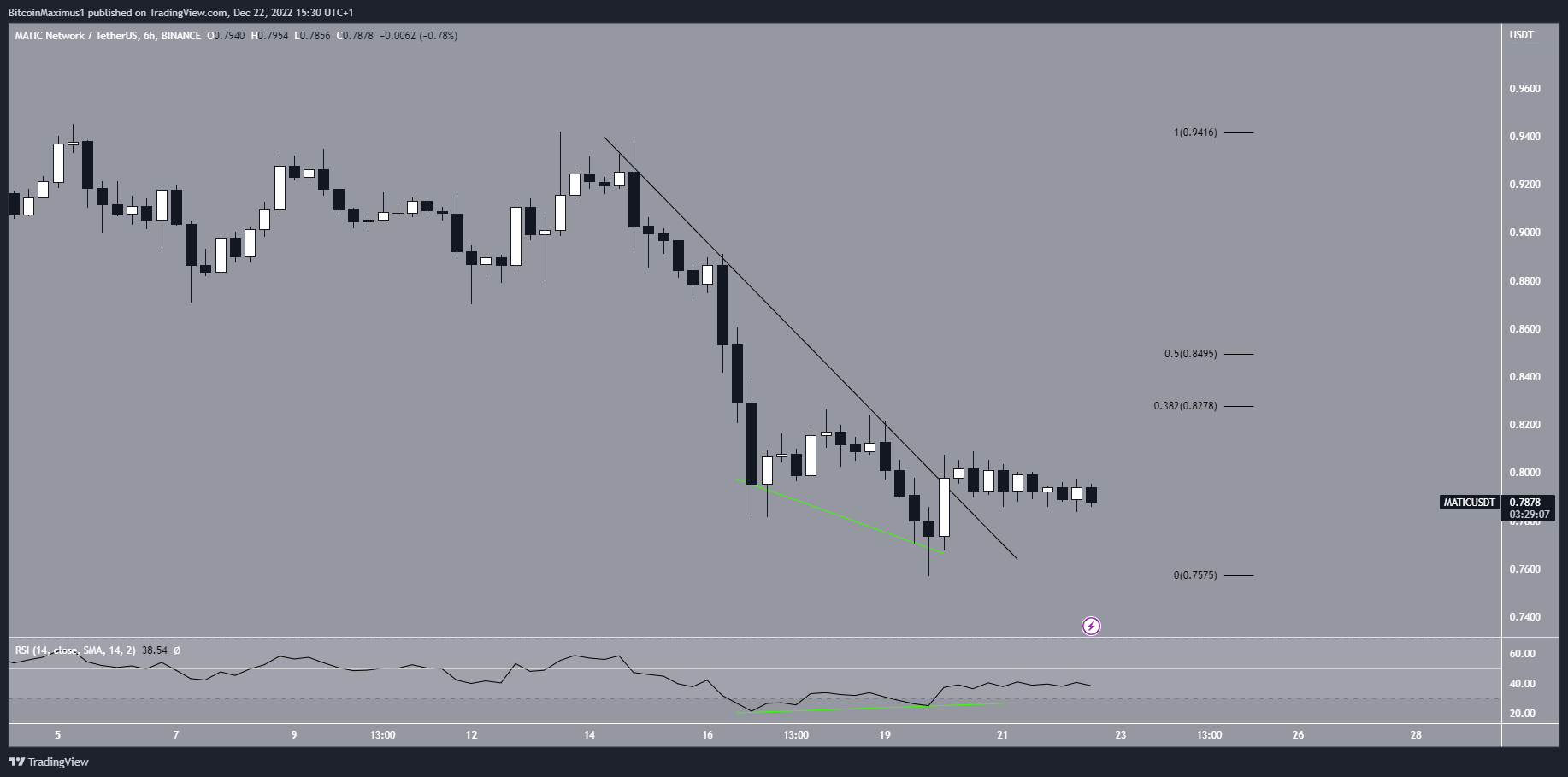 وثمة قراءات هبوطية للإطار الزمني اليومي، حيث يشير الرسم البياني لمدة 6 ساعات إلى توقع بارتفاع سعر MATIC قبل حدوث هذا الانخفاض، وبالفعل كسر سعر شبكة MATIC خط المقاومة التنازلي بعد أن أسس مؤشر القوة النسبية التباعد التصاعدي (الخط الأخضر) وعلى الرغم من عدم الدخول في ارتفاع جديد إلا أنه أثبت صحة خط المقاومة كدعم بعد يوم من الاختراق السعري.