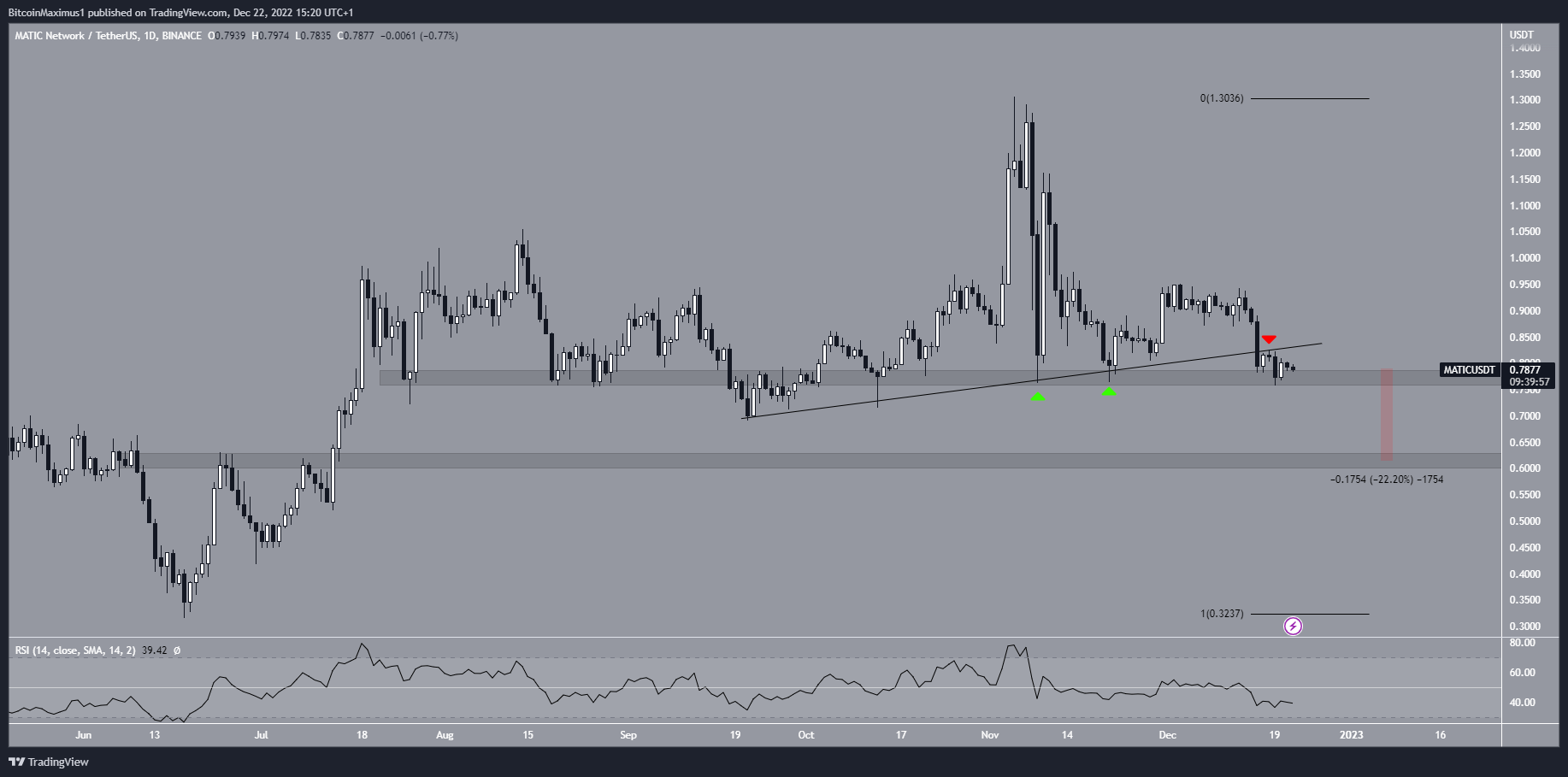 وفي الفترة الحالية تتداول MATIC بسعر أعلى نسبياً من منطقة الدعم الأفقية 0.78 دولار بعد أن كان ذلك بمثابة منقطة دعم في نهاية يوليو، فقد يؤدي الانهيار إلى تسريع معدل الانخفاض.