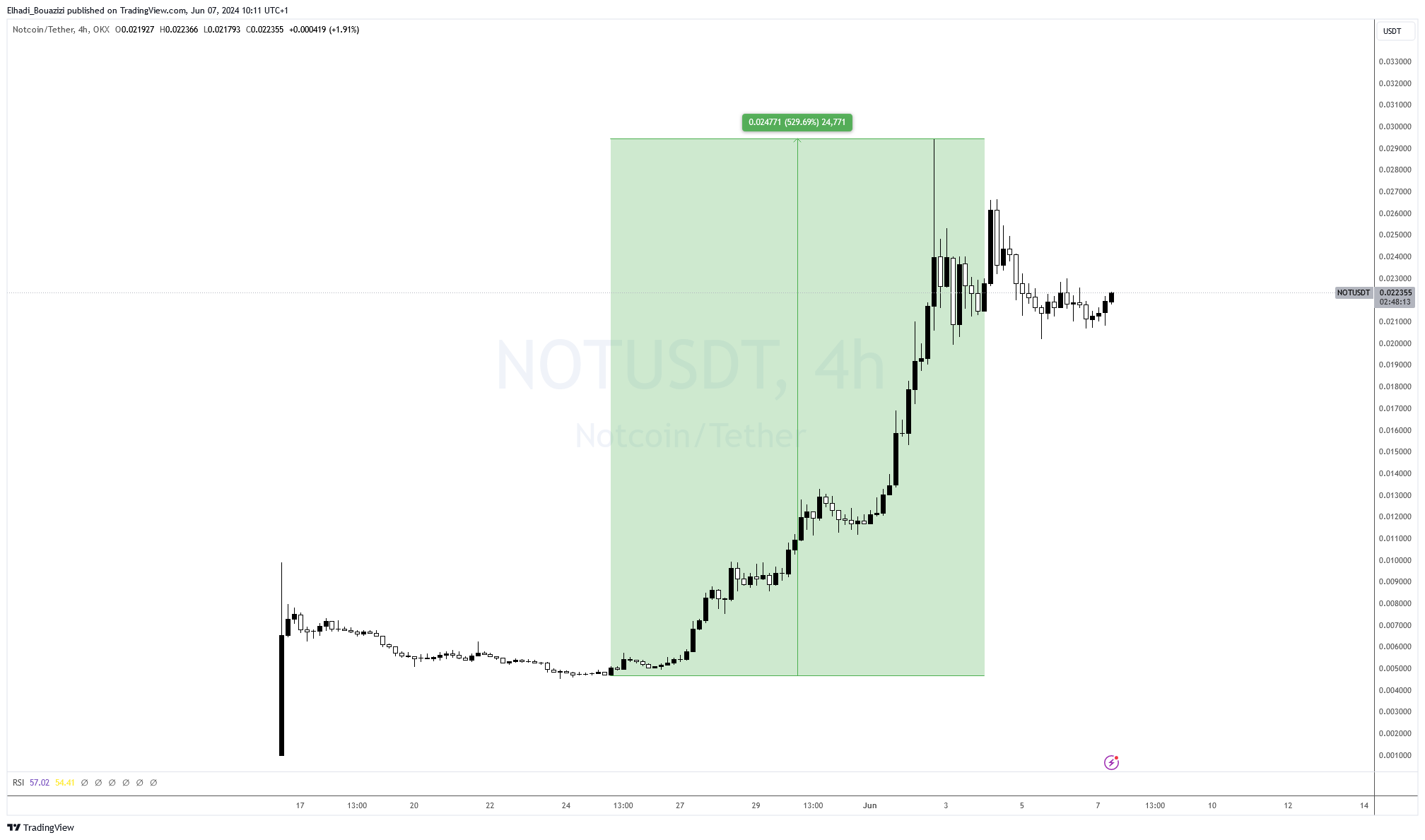شهد سوق العملات الرقمية البديلة انتعاشة ملحوظة بعد الموافقة على صناديق تداول إيثيريوم الفورية (ETFs) في الولايات المتحدة، إلا أن عملة نوتكوين Notcoin (NOT) خطفت الأضواء بصعود قياسي تجاوز 500% في الفترة من 25 مايو إلى 3 يونيو. بعد أن استطاعت جذب اهتمام الملايين من المستخدمين حول العالم.