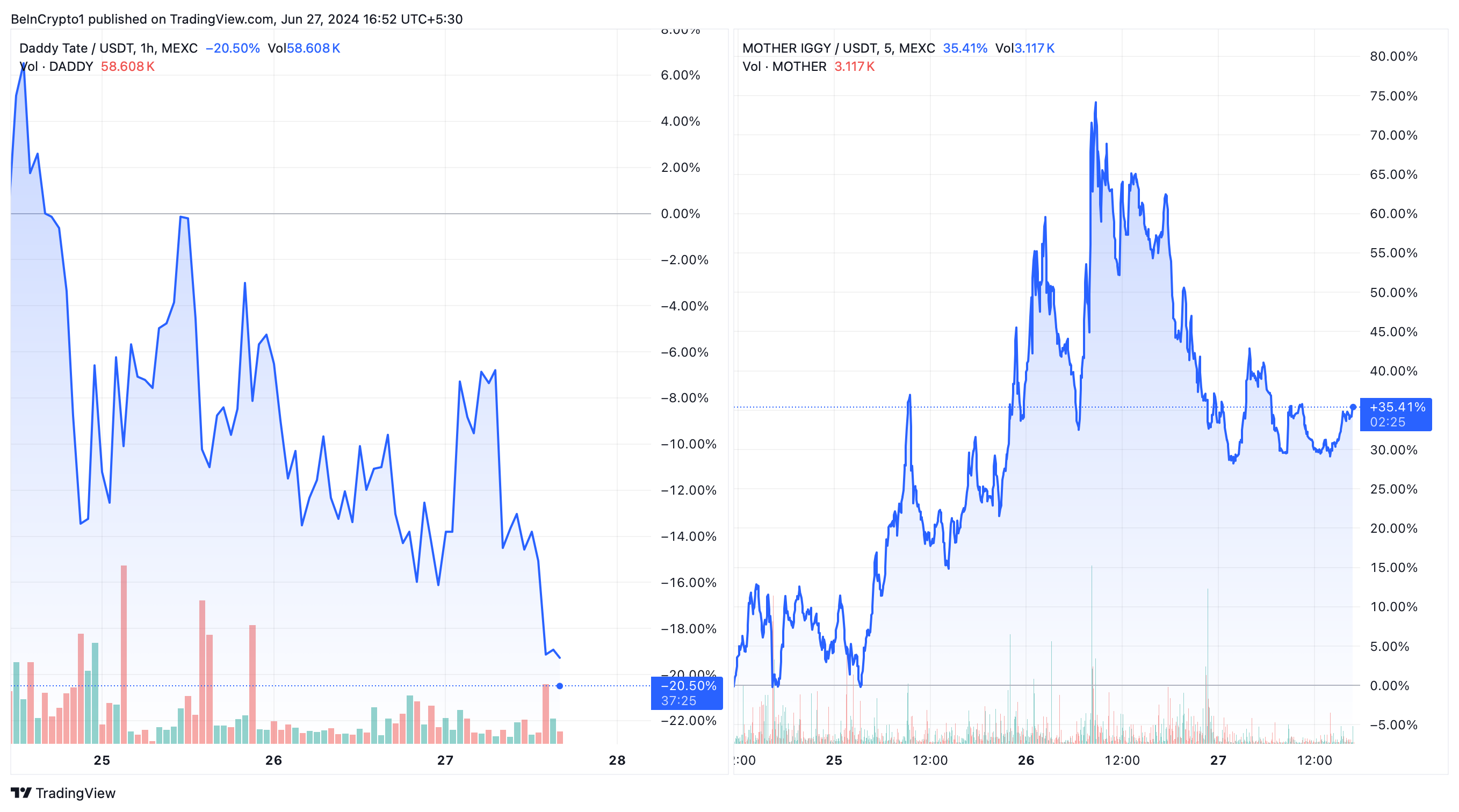 أداء سعر دادي تيت (DADDY) وأم إيجي (MOTHER). المصدر: TradingView