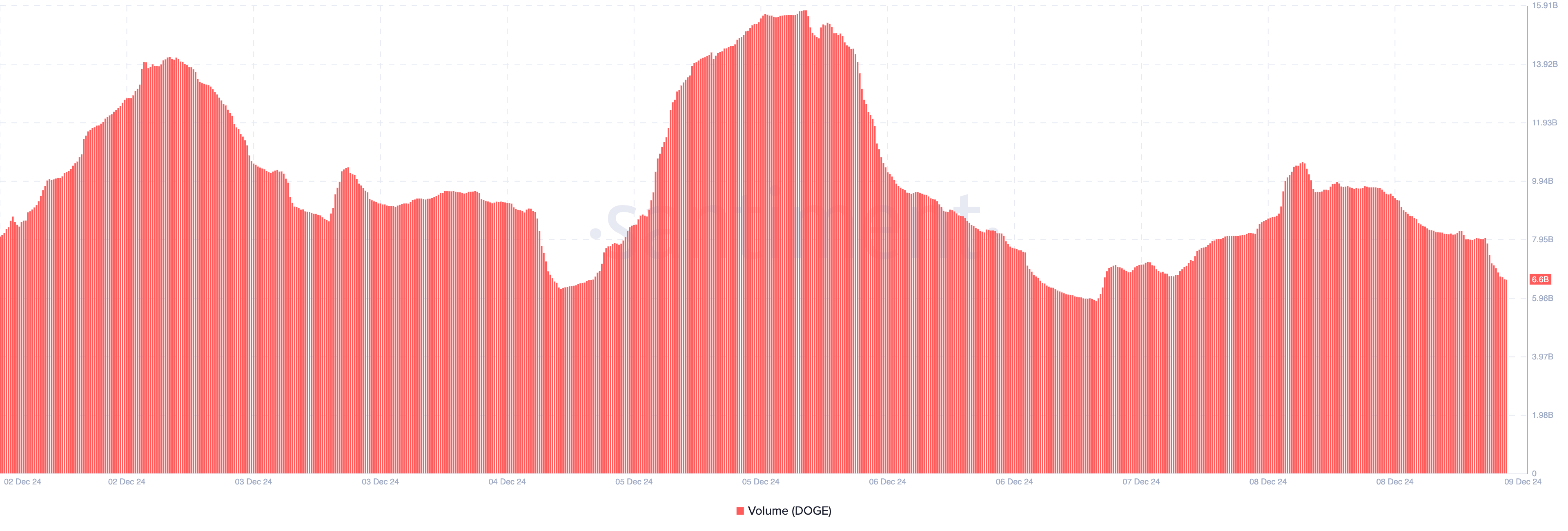 أحد أسباب هذا التأكيد هو حجم دوجكوين. في 5 ديسمبر، تجاوز حجم العملة 15 مليار$، مما يشير إلى أن هناك الكثير من الشراء والبيع.