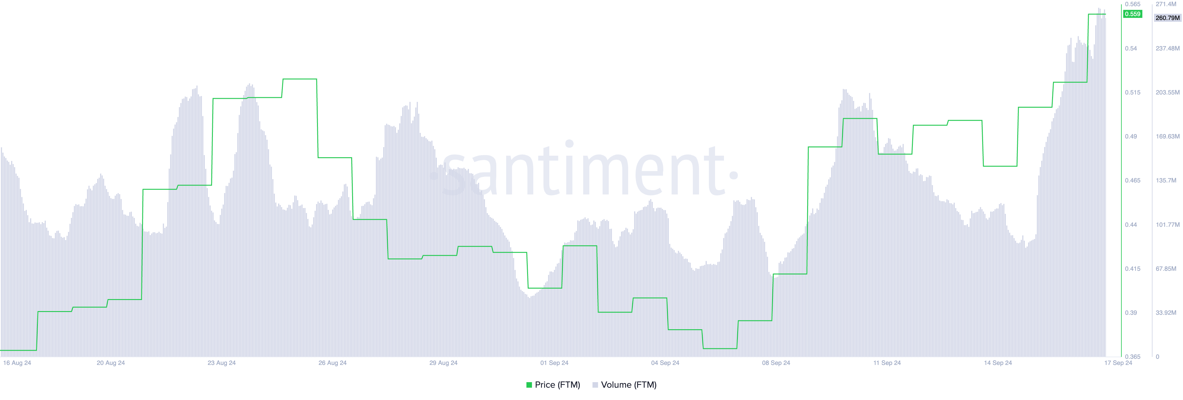 اعتبارًا من وقت النشر، يتم تداول FTM بسعر 0,56 دولار، وهو السعر الذي وصلت إليه آخر مرة في 2 يوليو. يدعم الارتفاع المستمر الطلب القوي، كما يتضح من حجم التداول الذي ارتفع إلى أعلى مستوى في 30 يومًا.