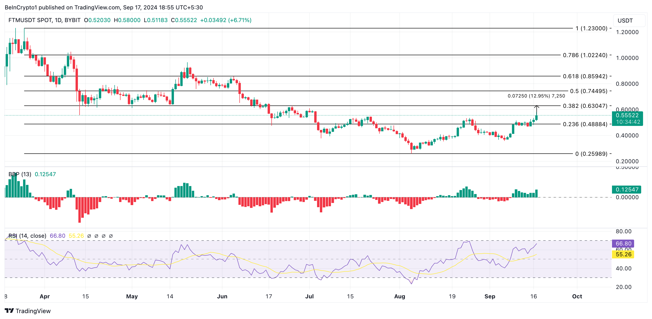 يشير ارتفاع مؤشر القوة النسبية (RSI) لـ FTM، والذي يبلغ حالياً 67,50، إلى الطلب المستمر على العملة البديلة، مما يدل على أن ضغط الشراء يفوق نشاط البيع. يوحي هذا المستوى بأن السوق يقترب من ظروف الشراء المفرط، والتي عادة ما تعكس الطلب القوي.
