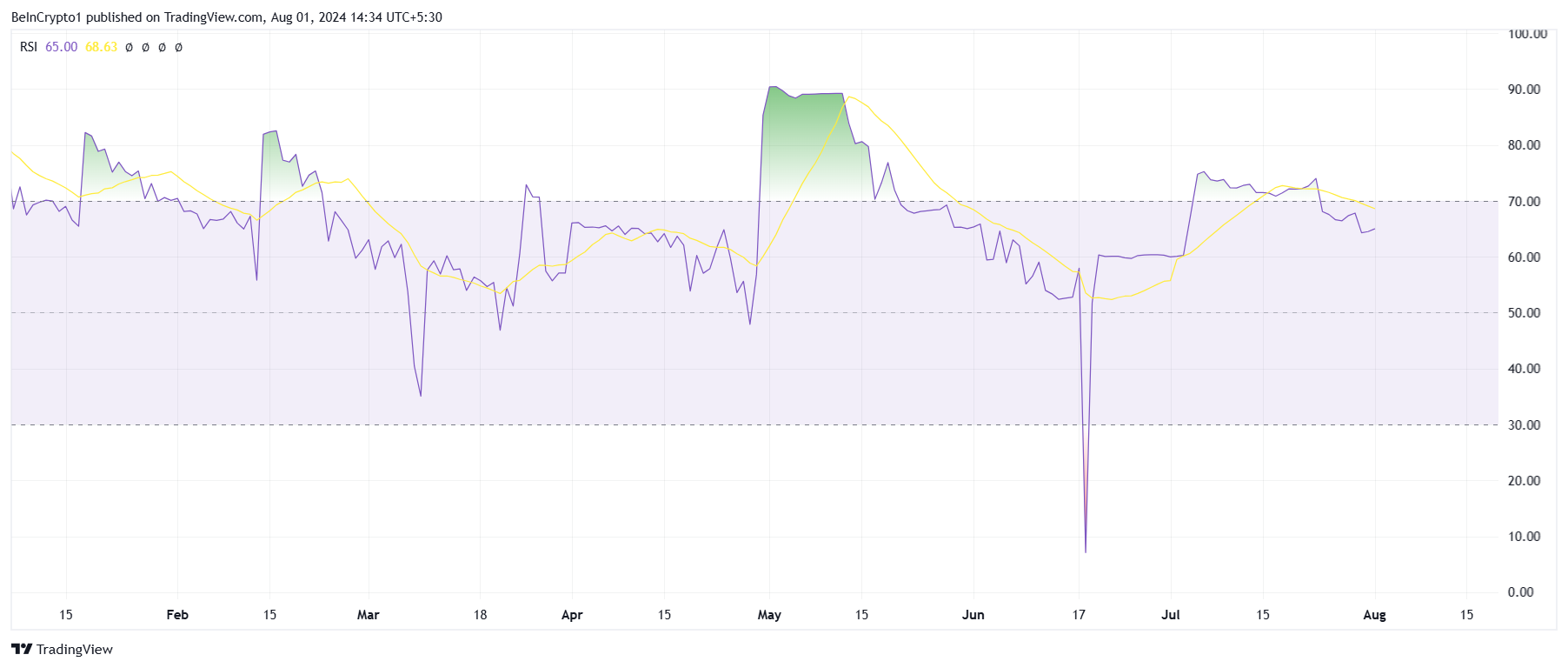 كشف مؤشر القوة النسبية (RSI) أن الأصل الرقمي كان مشترى بشكل مفرط مؤخرًا. غالبًا ما يكون هذا الشراء المفرط بمثابة مقدمة لتصحيح السعر، مما يشير إلى أن الأصل كان يتم تداوله بسعر أعلى من قيمته الجوهرية. هذه الحالة عادة ما تدفع المستثمرين لإعادة تقييم مراكزهم، مما يزيد من ضغط البيع.