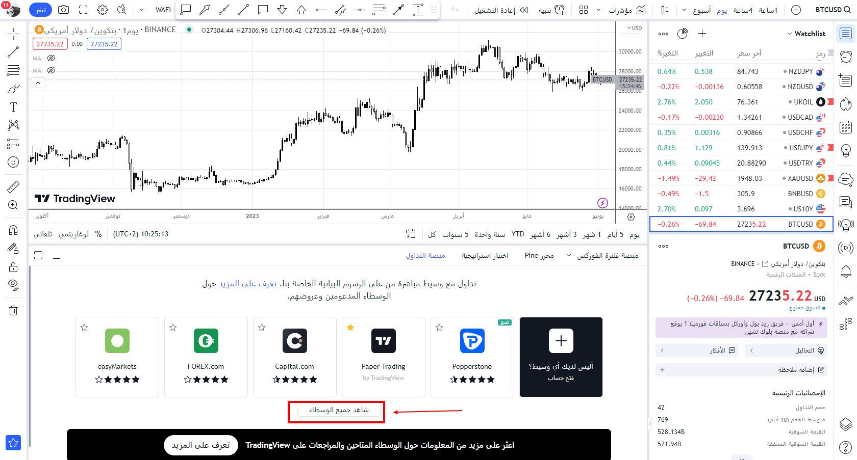 انقر على زر "شاهد جميع الوسطاء" لتظهر لك القائمة كاملة. ثم انقر على أيقونة منصة بينانس