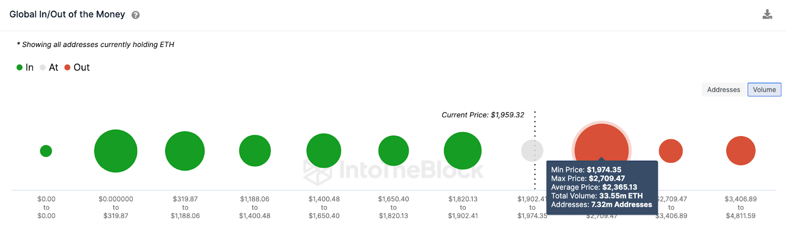 كما تؤكد بيانات منصة IntoTheBlock صحة هذا التوقع. كما هو موضح أدناه، يمتلك نحو 7.3 مليون مستثمر حاليًا 33.55 مليون تم شراؤها بمتوسط سعر يبلغ 2365 دولار.