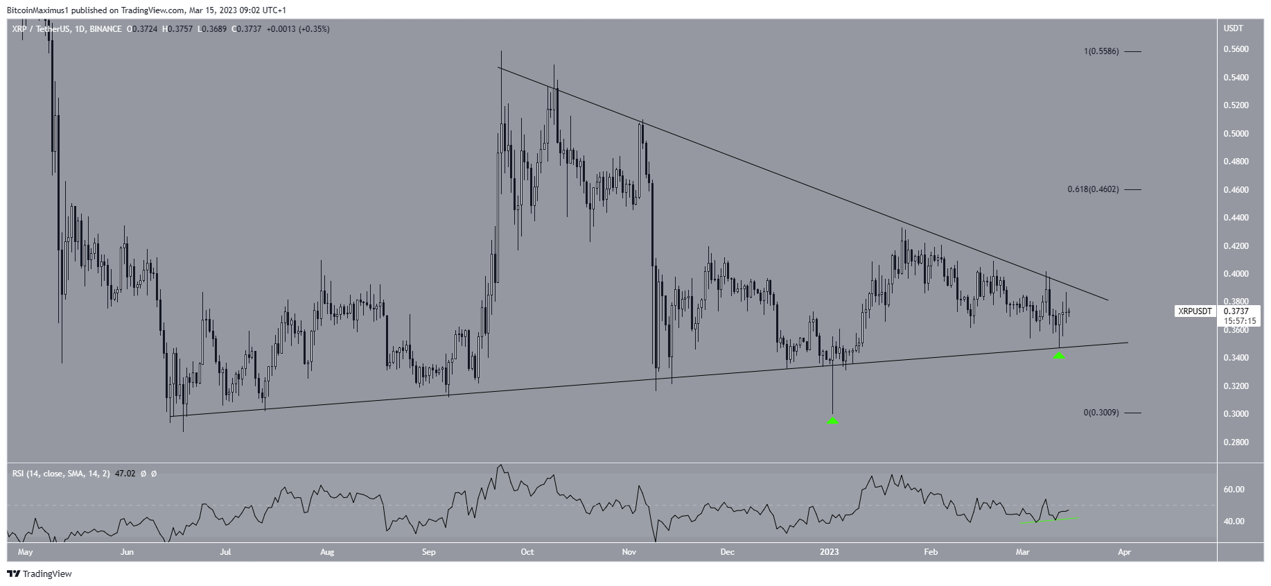 حيث تتداول العملة الرقمية داخل مثلث متماثل طويل المدى منذ يونيو 2022.