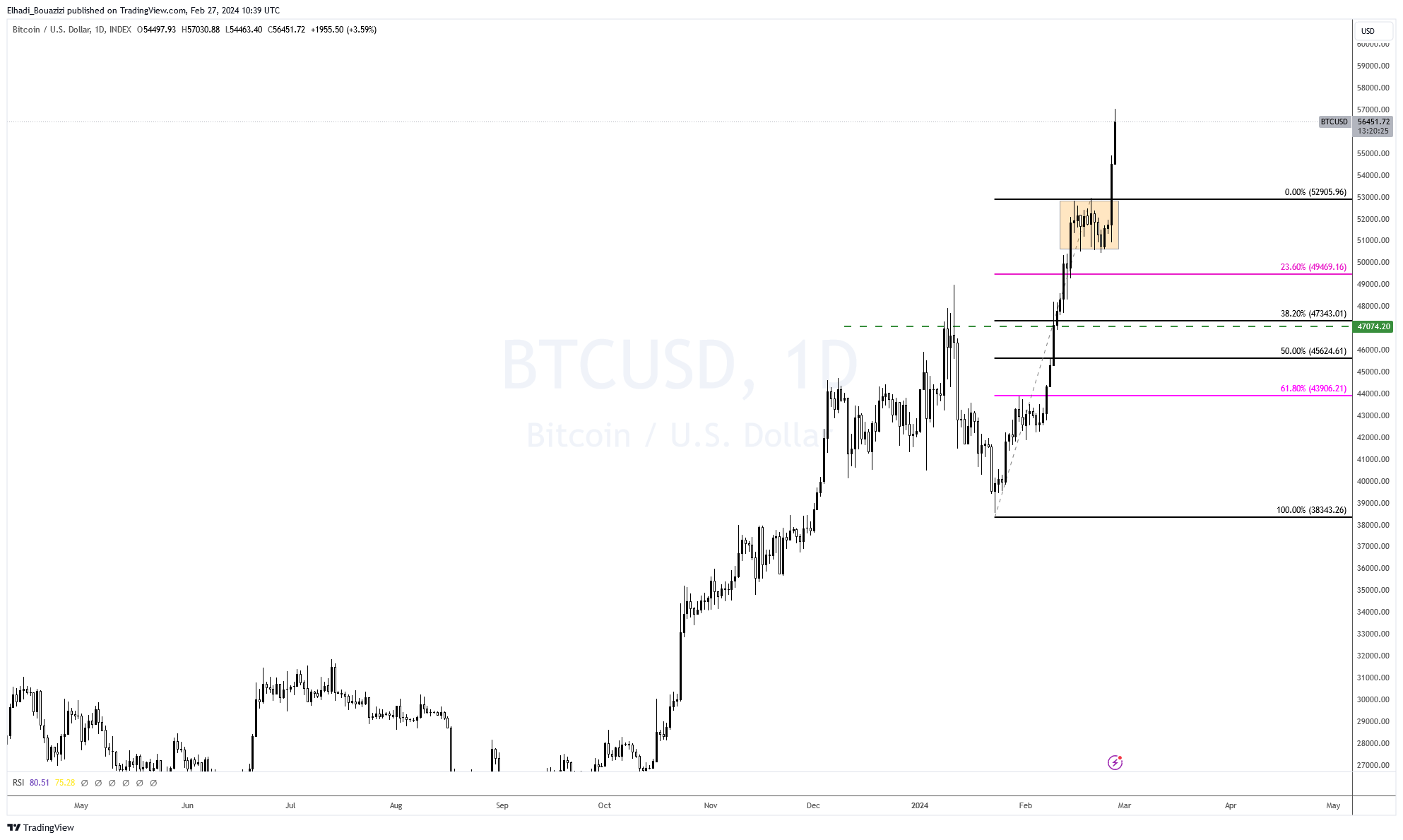 ارتفاع البيتكوين كان متوقع، ولكن التوقيت و السرعة التي صعدت بها كانت مفاجئة للبعض. حيث أن أغلب التوقعات كانت تشير إلى احتمالية حدوث تصحيح بعد موجة الصعود السابق، ودخول السعر في حالة من التوطيد و التداولات الجانبية.