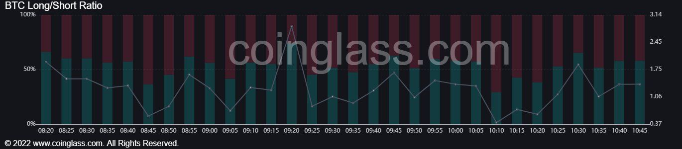 ارتفع سعر البتكوين BTC إلى نطاق 18000 دولار في 14 ديسمبر 2022 ومن ثم ارتفعت الفائدة المفتوحة على العقود الآجلة الخاصة بالأصل المشفر، ولم يشهد السعر التعافي من أعلى مستوياته في ديسمبر، ولكنه ارتفع تدريجياً من أدنى مستوى شهري حدث في 19 ديسمبر عند 16476 دولار، ووفقاً لبيانات منصة Coinglass فإن 58% من خيارات البتكوين المفتوحة طويلة الأجل وليست قصيرة الأجل.
