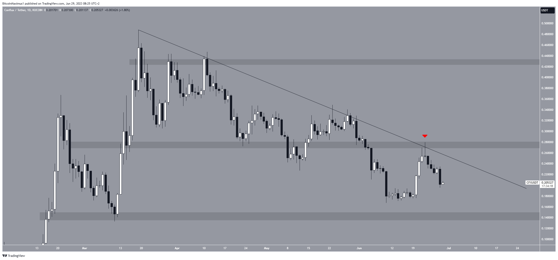 وإذا استمر الانخفاض، فإن أقرب منطقة دعم ستكون عند 0.14 دولار. ومع ذلك، إذا انكسر سعر CFX فيمكن أن يصل إلى منطقة 0.28 دولار مرة أخرى.