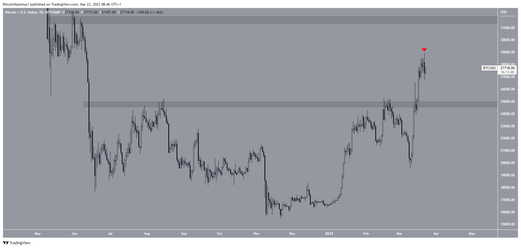 ومع استمرار الزيادة السابقة، فقد يتحرك السعر إلى 31600 دولار.