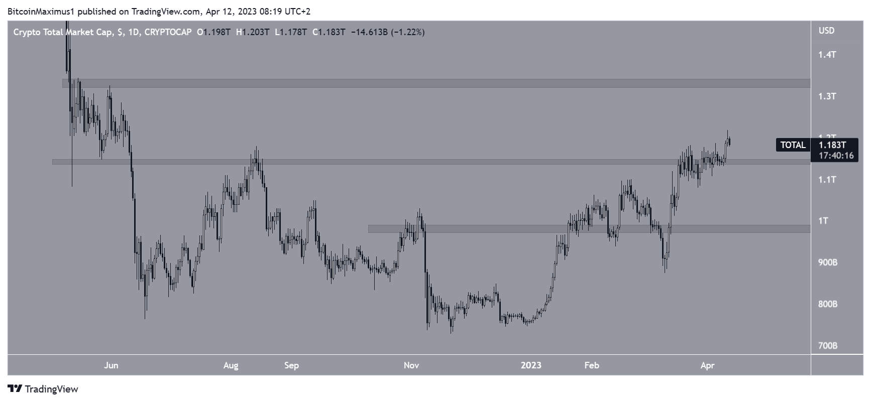 اندلعت القيمة السوقية للعملات الرقمية من منطقة المقاومة 1.15 تريليون دولار في التاسع من أبريل.