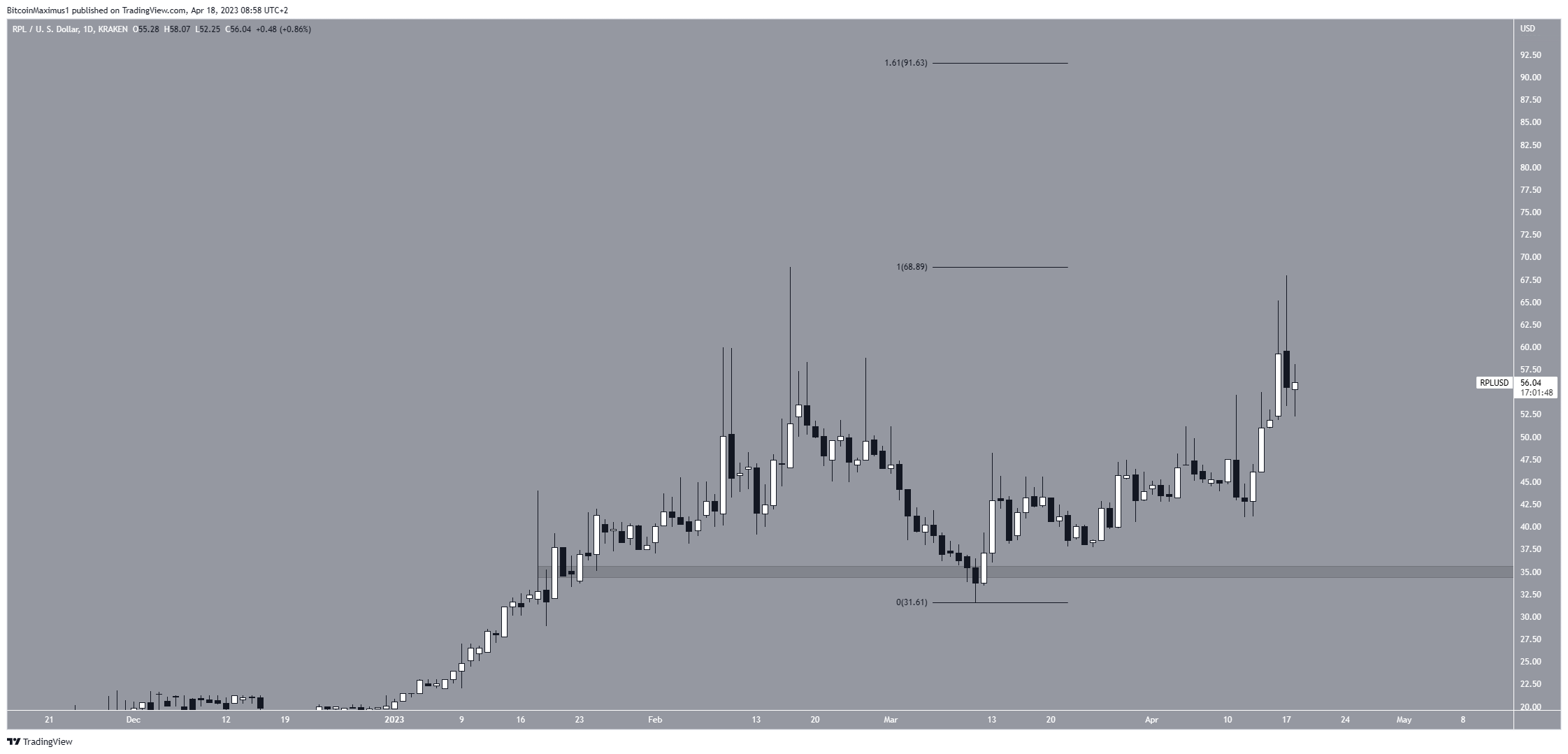 في سياق متصل، وصل سعر عملة RPL إلى أعلى مستوياته عند 68 دولار في السابع عشر من أبريل.