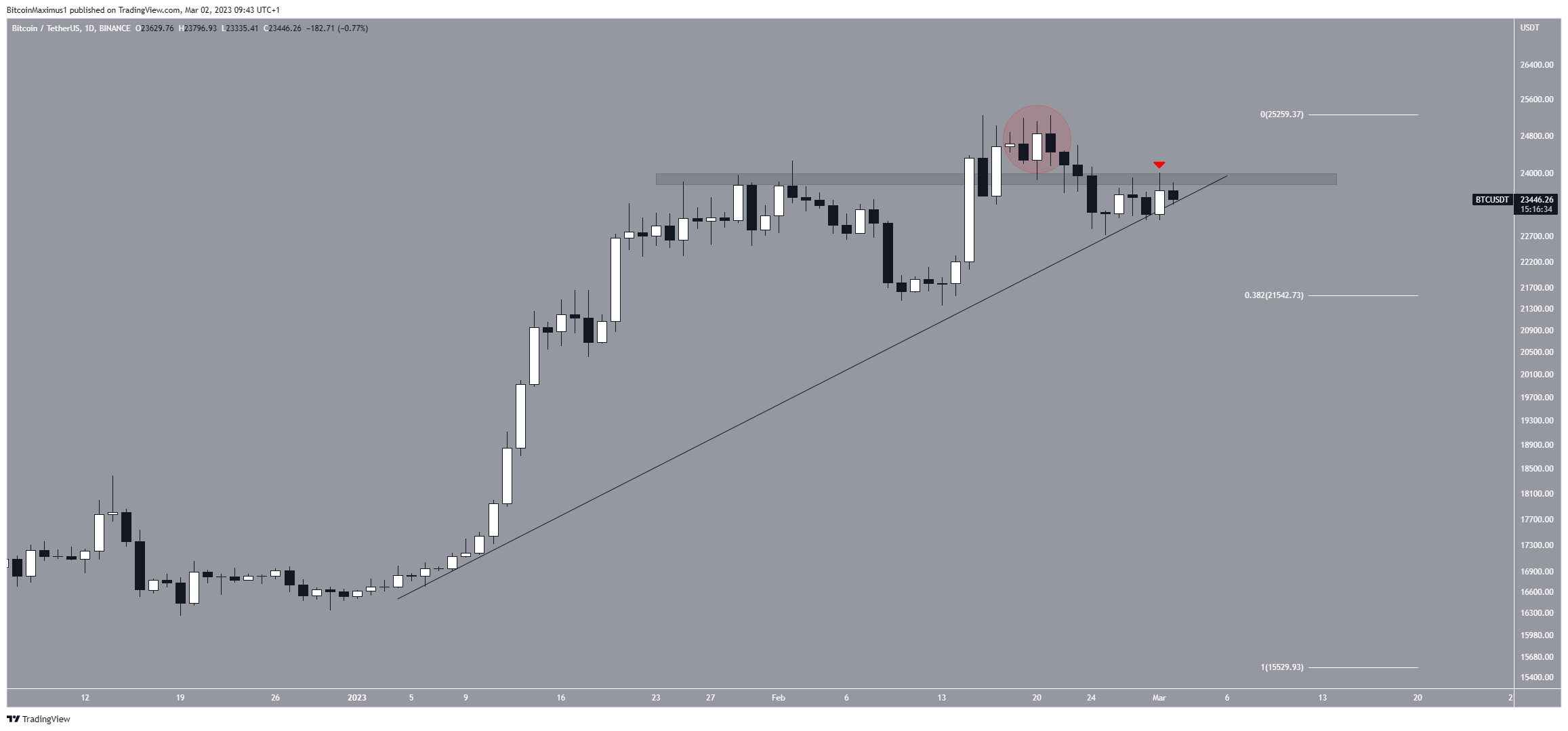 Sponsoredوقد حاول سعر BTC بمحاولة أخرى للاختراق في الأول من مارس، لكنه لم ينجح ( العلامة الأحمر).