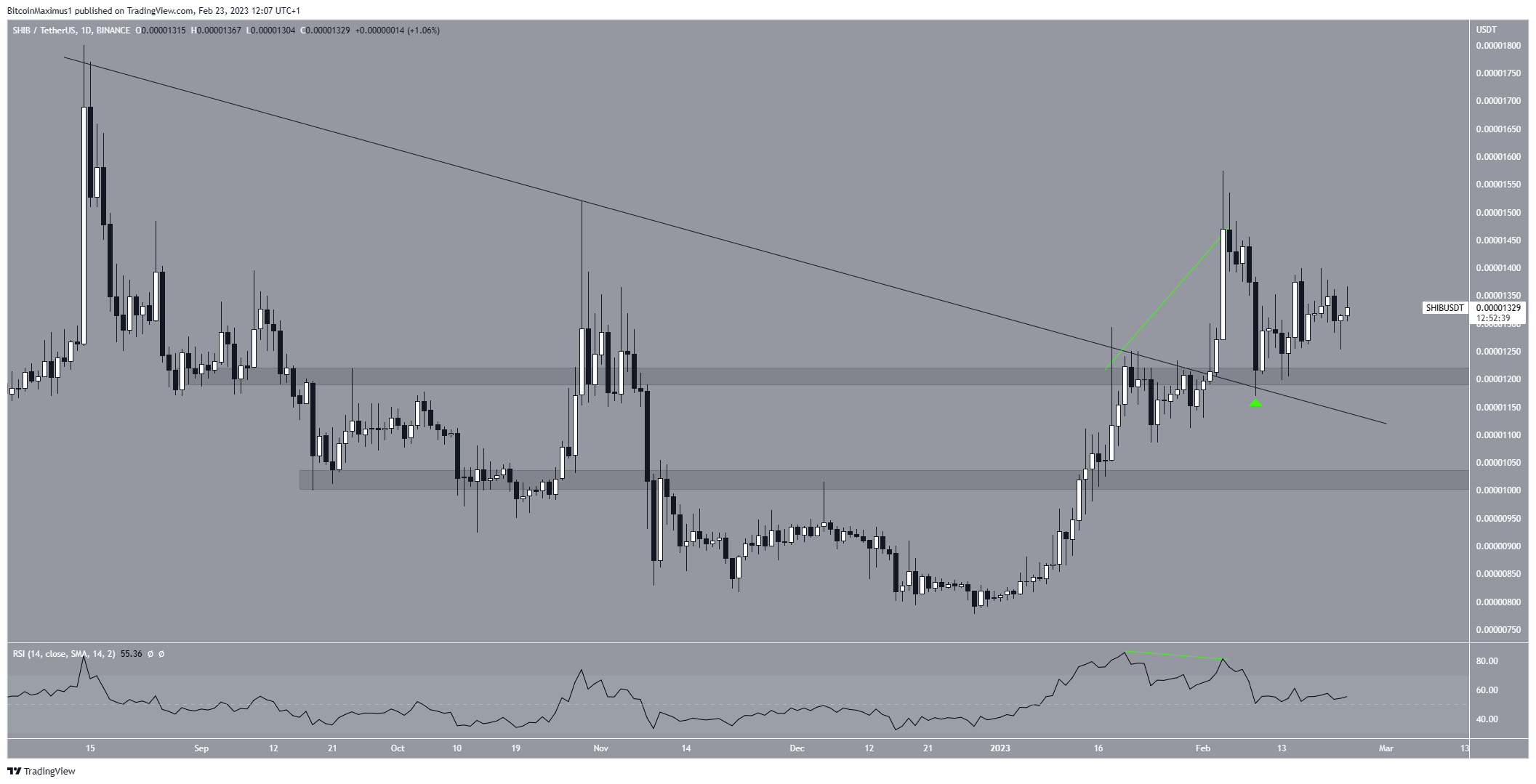 وشهدت العملة الرقمية انخفاضاً منذ الرابع من فبراير، لتصل إلى النطاق السعري 0.0000157 دولار.
