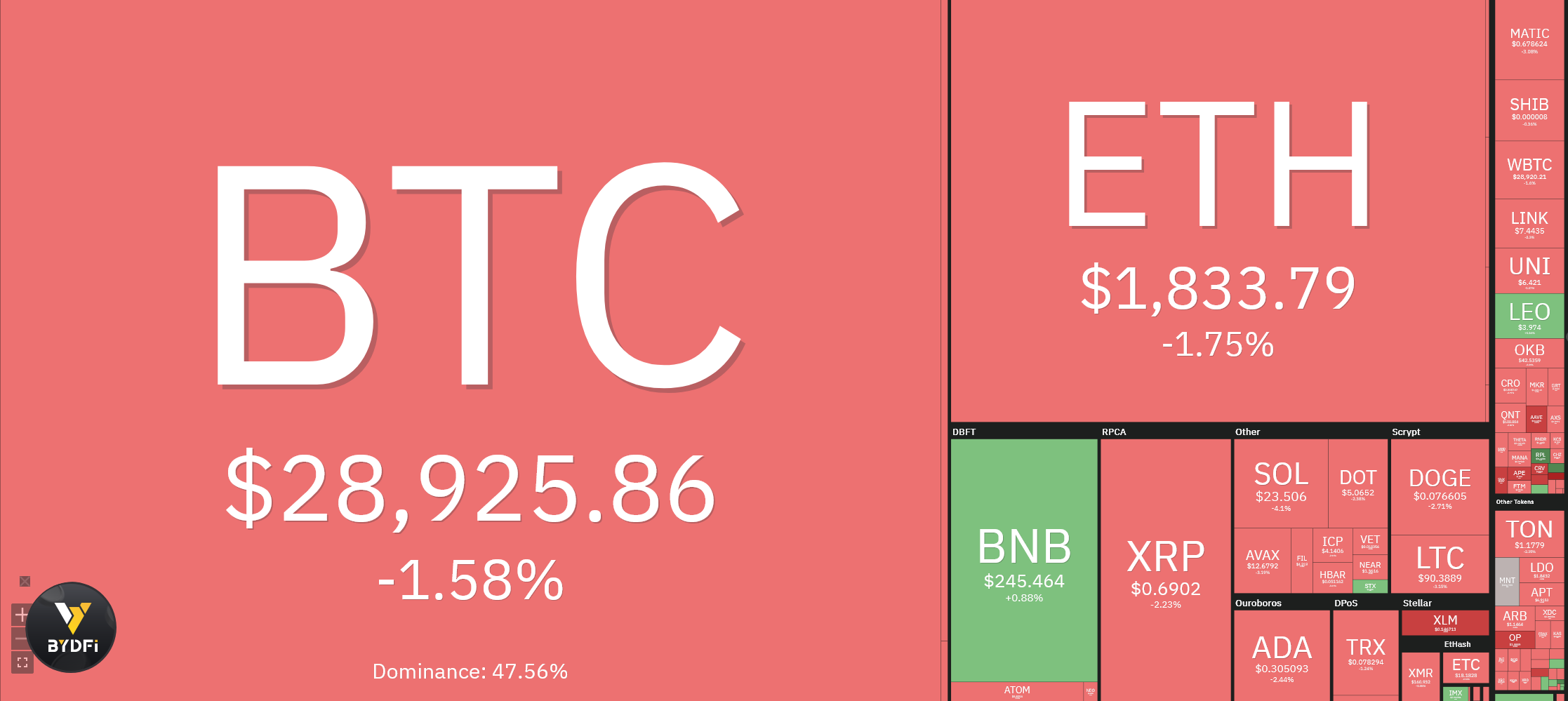 تراجعت أسعار البتكوين وكامل سوق العملات الرقمية في بداية تداولات يوم الثلاثاء. حيث فقدت البيتكوين مستوى الدعم عند 29,000 دولار أمريكي. وذلك بسبب المخاوف حول اختراق منصة التمويل اللامركزي الشهيرة Curve Finance خلال عطلة نهاية الأسبوع. حيث تم سرقة ما يقدر بنحو 41 مليون دولار أمريكي وأثارت مخاوف حول انتشار هذه المشكلة إلى باقي منصات التمويل اللامركزي. ويُرجح أن الاختراق يعود إلى ثغرة في لغة البرمجة المستخدمة.