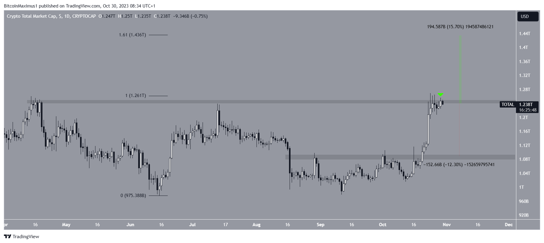 إذا اخترق TOTALCAP، فيمكن أن يرتفع بنسبة 16٪ ويصل إلى المقاومة التالية عند 1.44 تريليون دولار.
